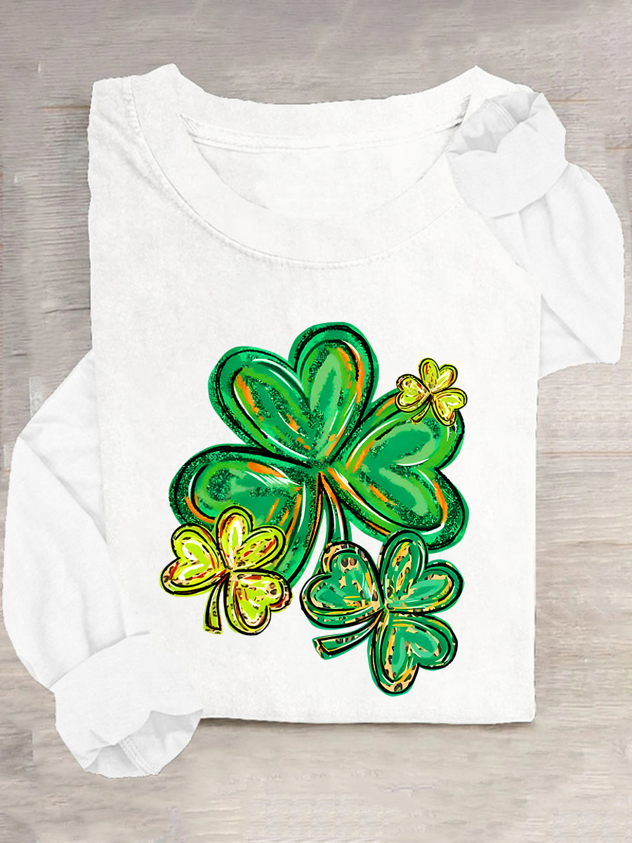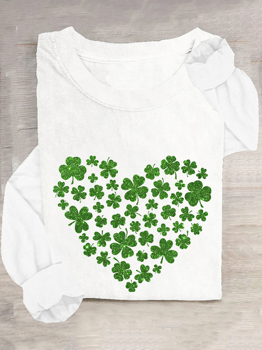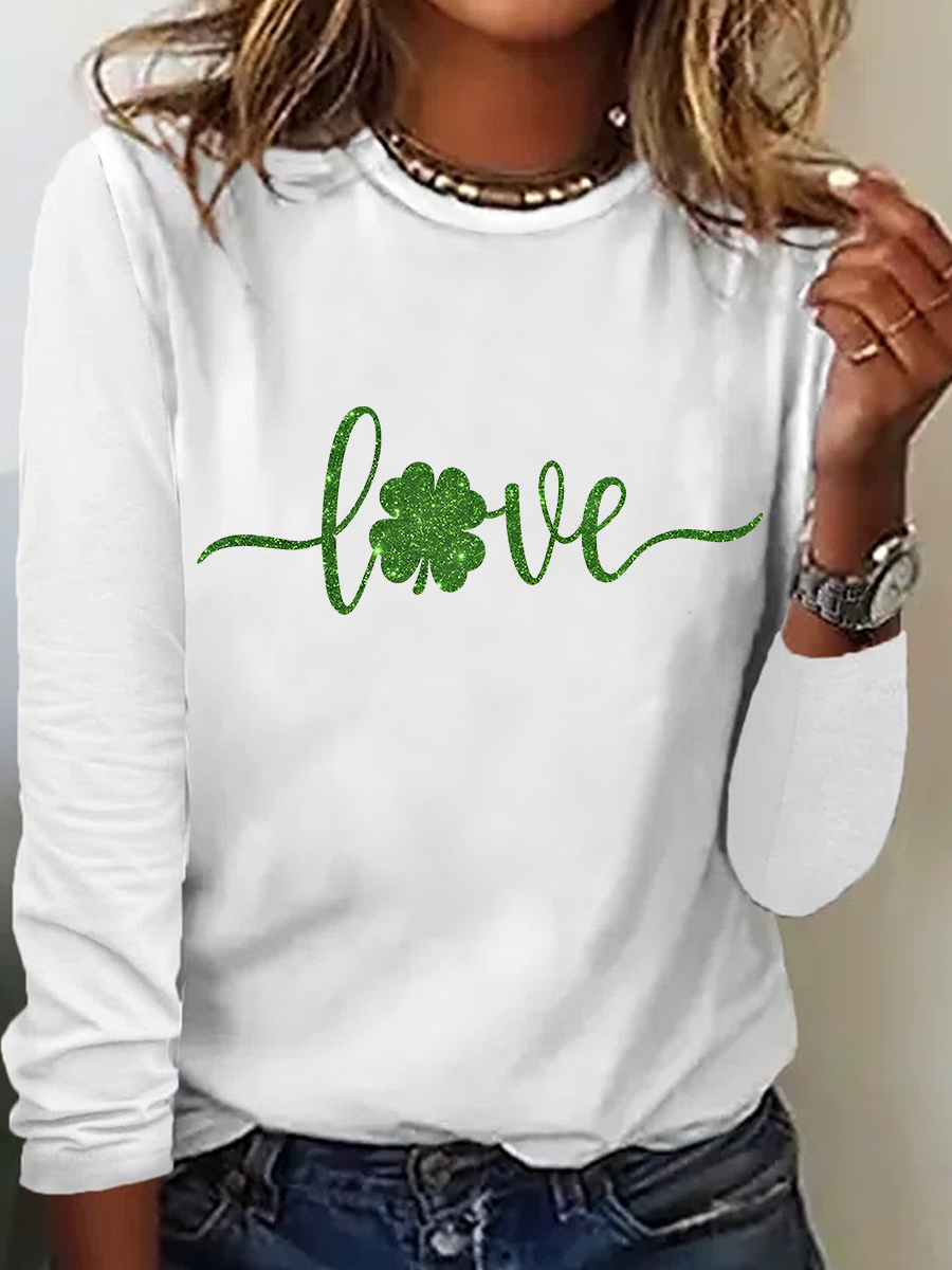 Women's St. Patrick's Day Glitter Clover Printed Top Long sleeve Shirt