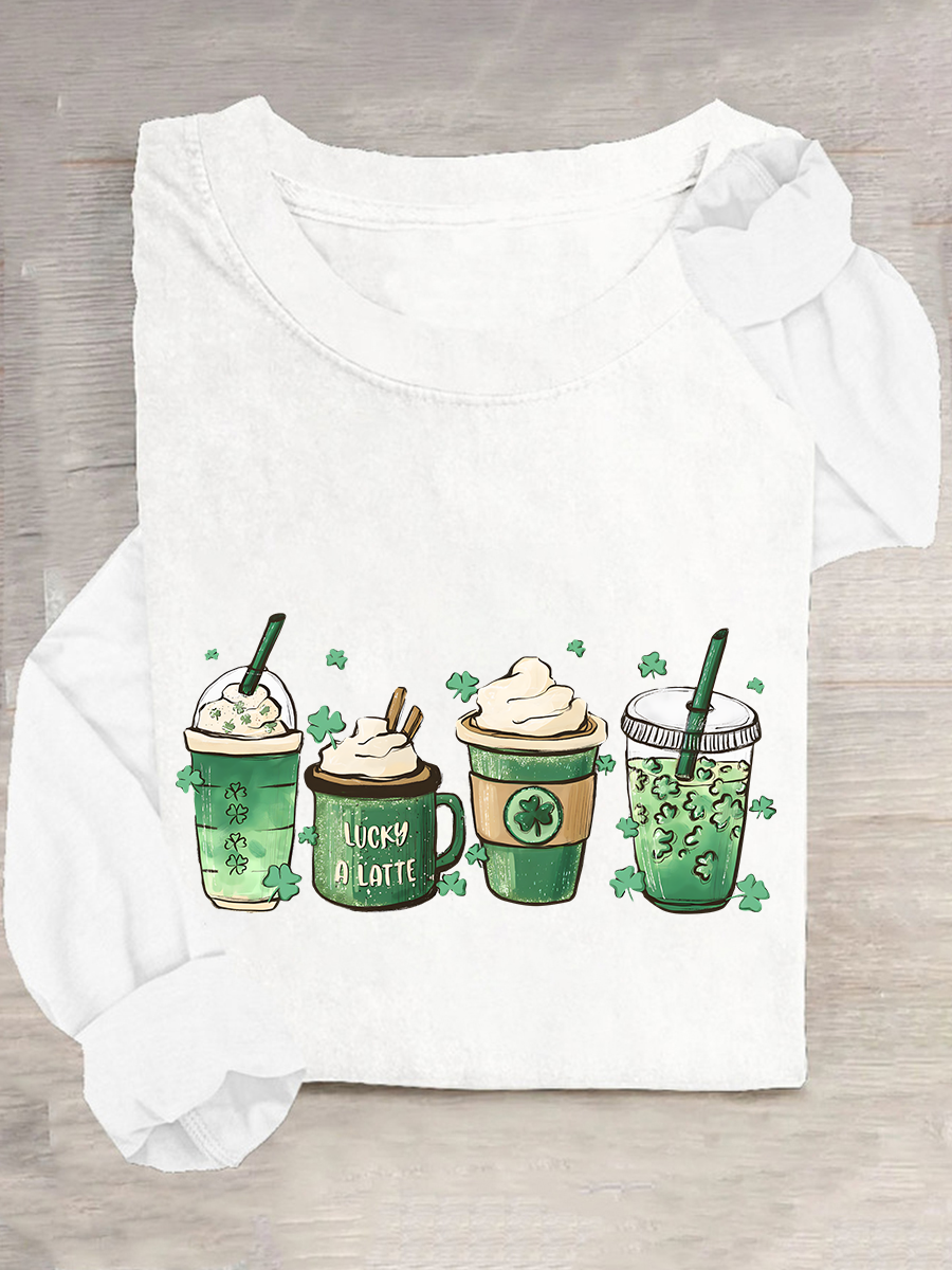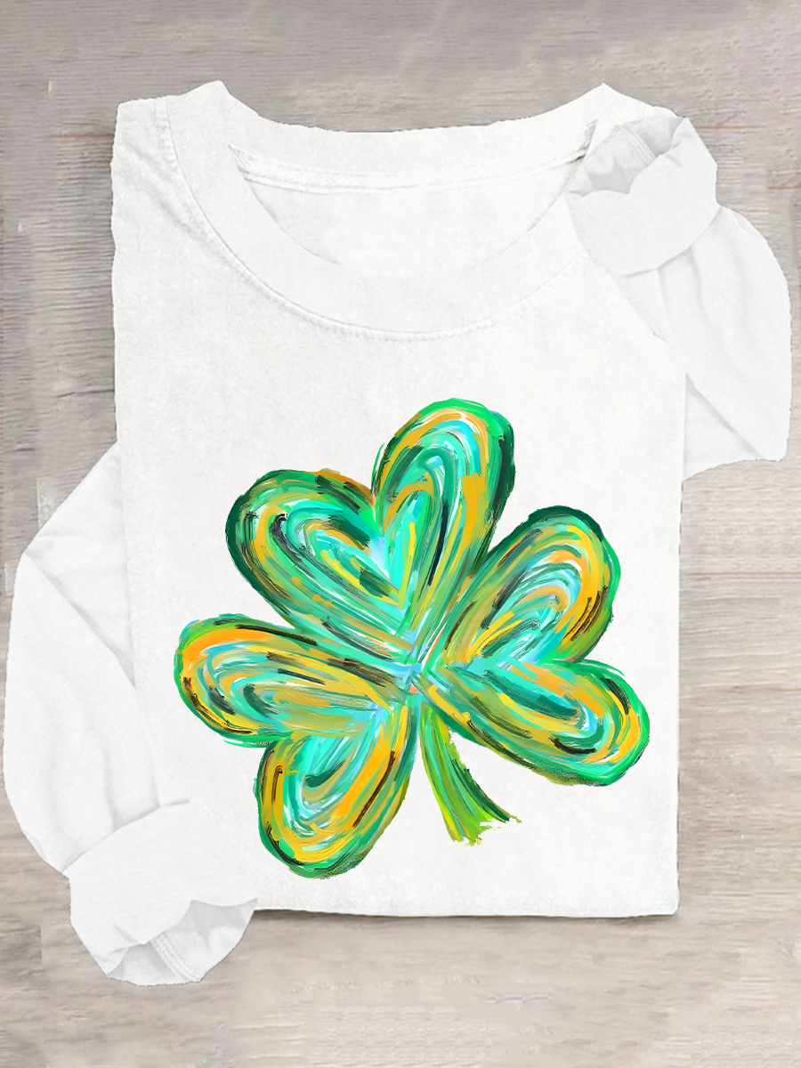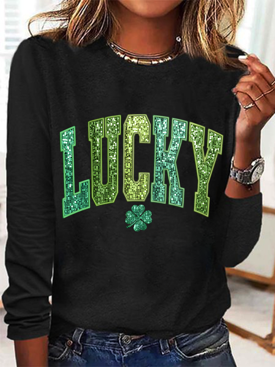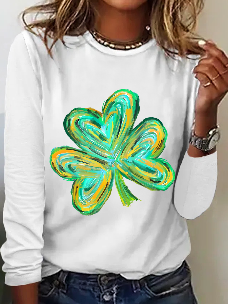 Women's St. Patrick's Day Glitter Clover Printed Top Long sleeve Shirt
