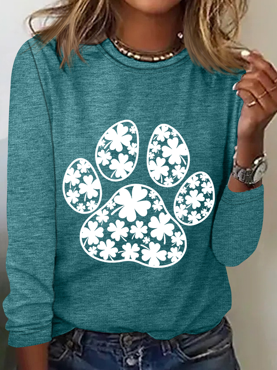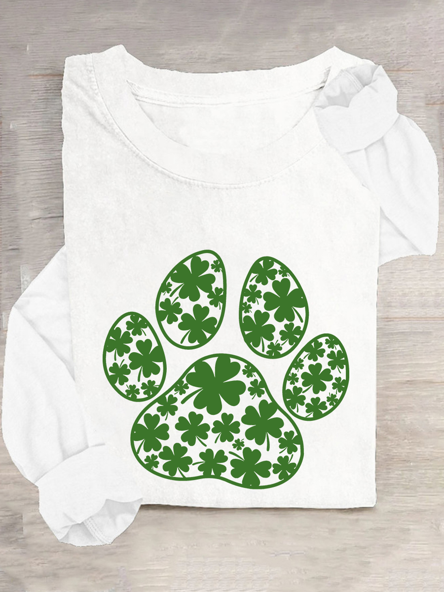 Paw Print Patricks Day Casual Long Sleeve Shirt