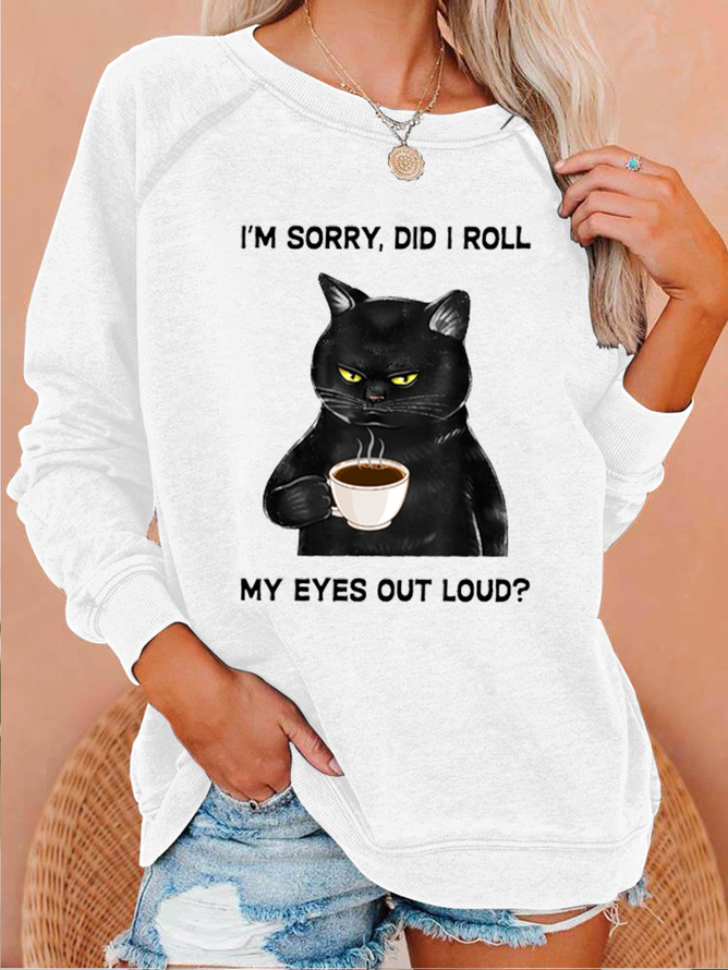Women's I Am Sorry Did I Roll My Eyes Out Loud Funny Back Cat Graphic Printing Crew Neck Casual Sweatshirt