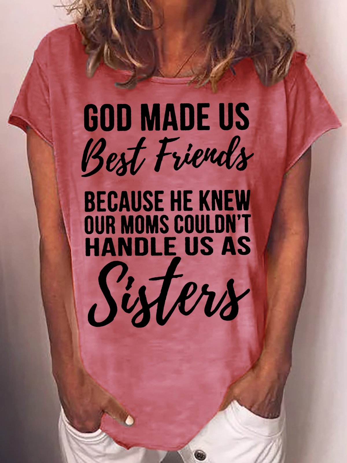 Womens Best Friends Funny Sisters Crew Neck Casual T-Shirt