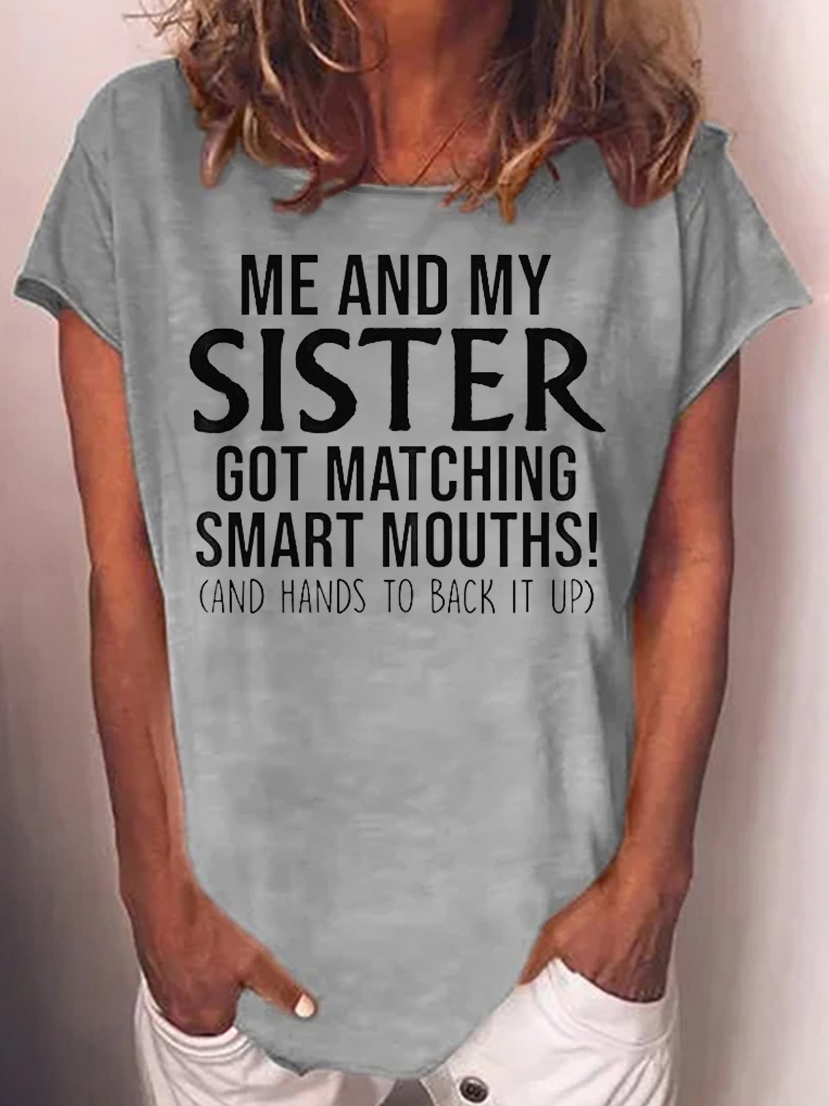 Women's Funny Saying Sister Letter Casual Crew Neck T-Shirt
