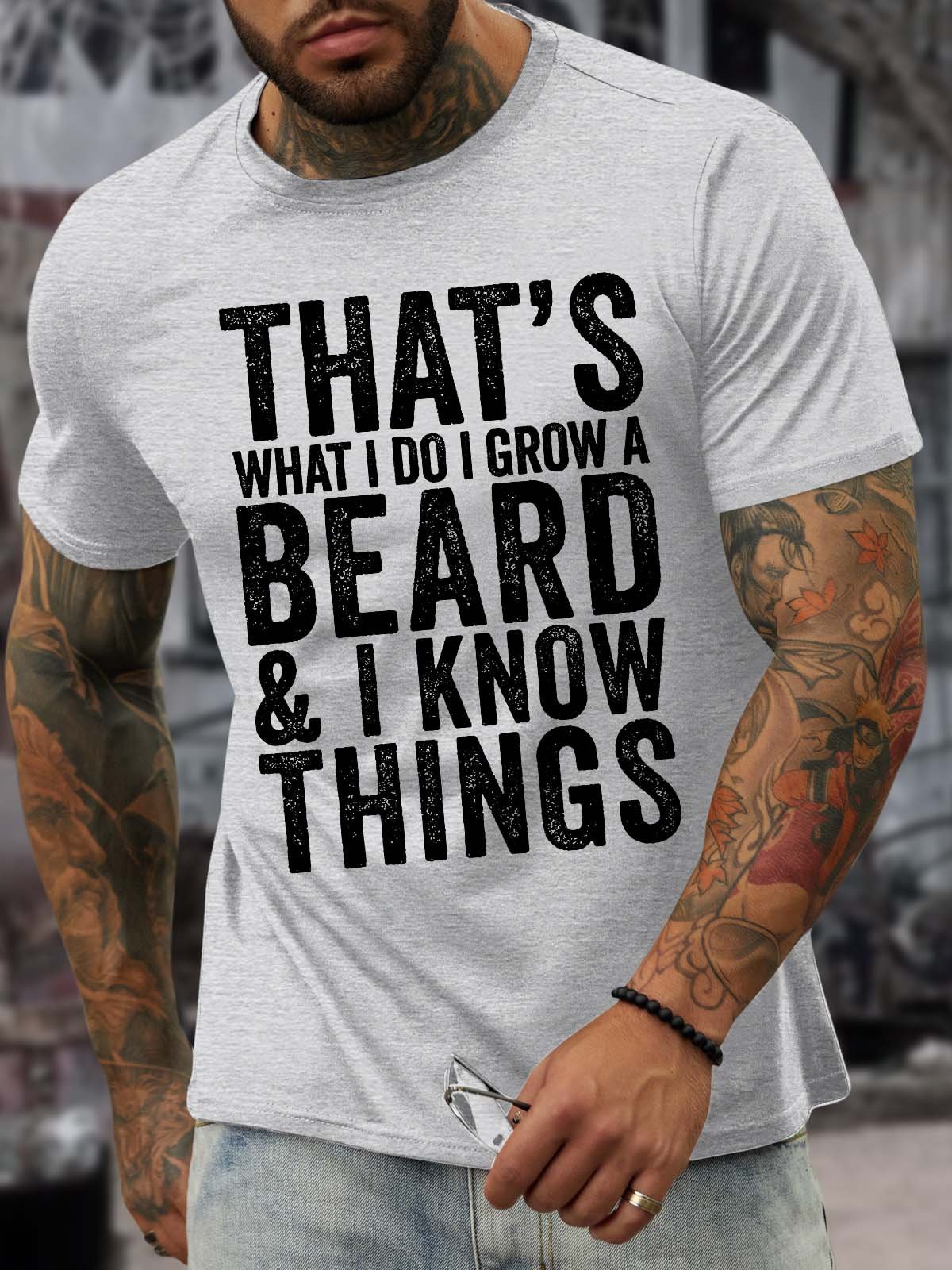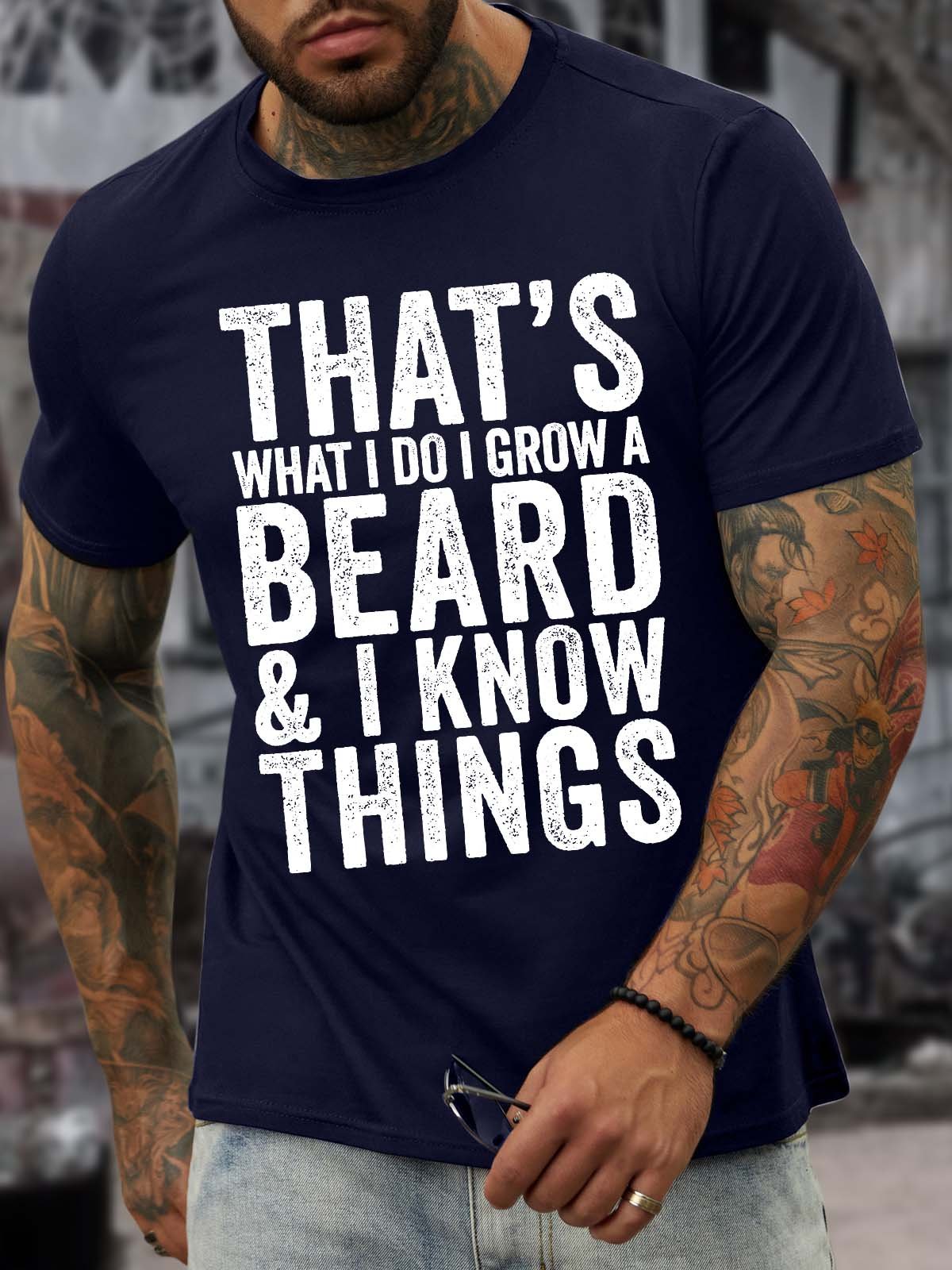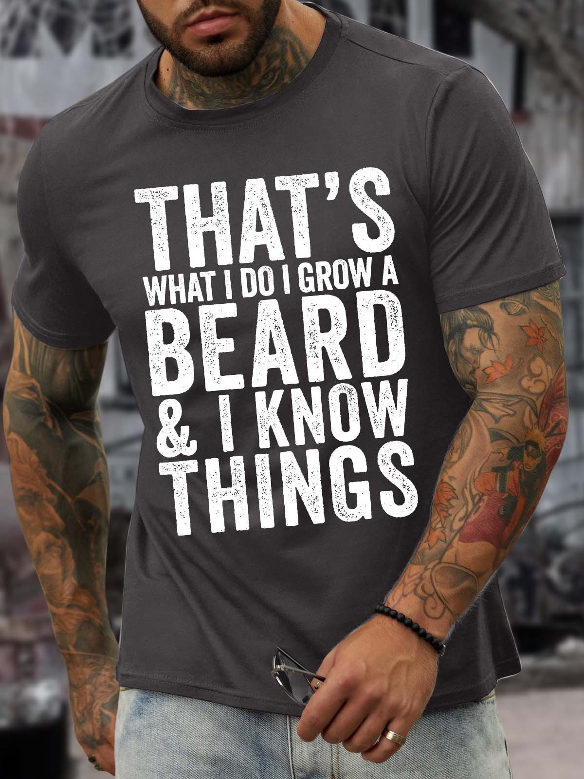 Men’s That’s What I Do I Grow A Beard And I Know Things Casual Regular Fit T-Shirt