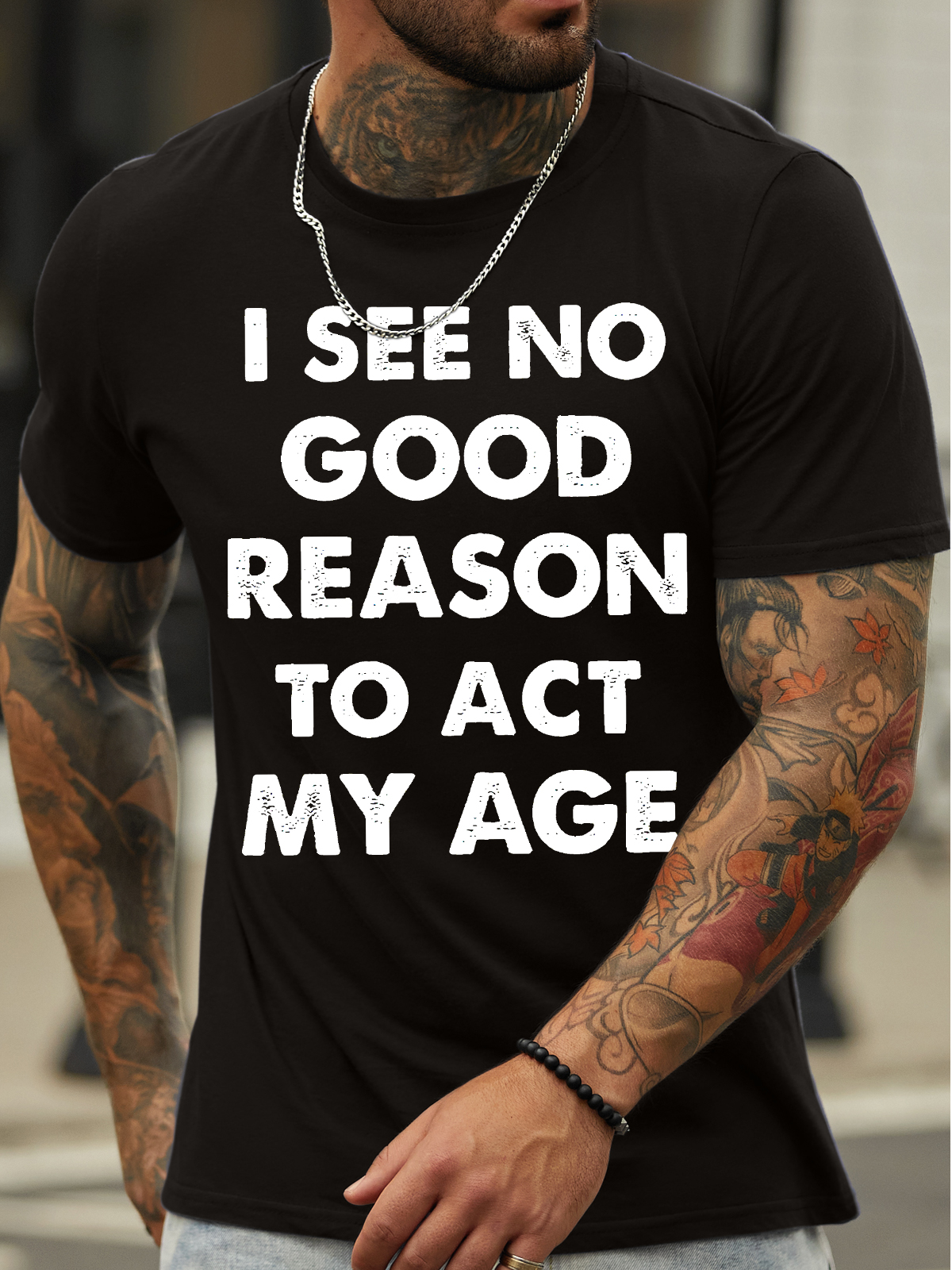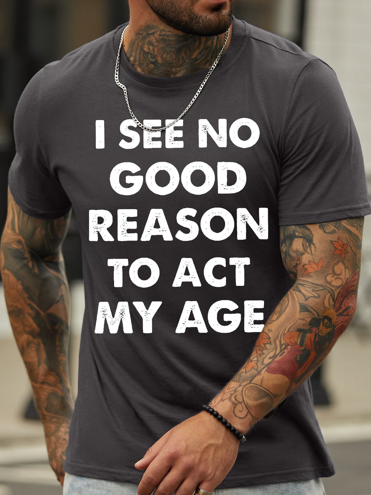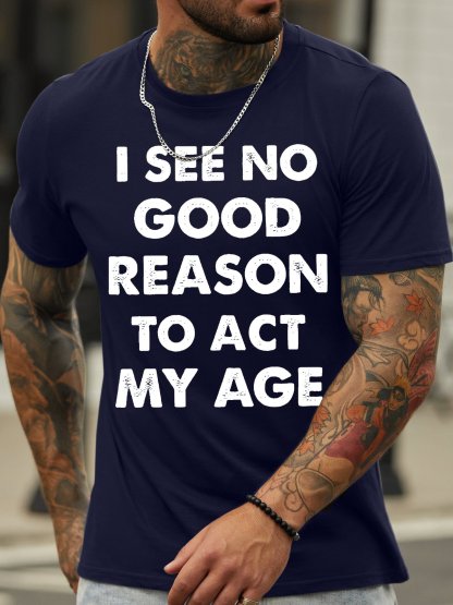 Men's I See No Good Reason Reason To Act My Age Funny Game Graphic Print Text Letters Cotton Casual T-Shirt