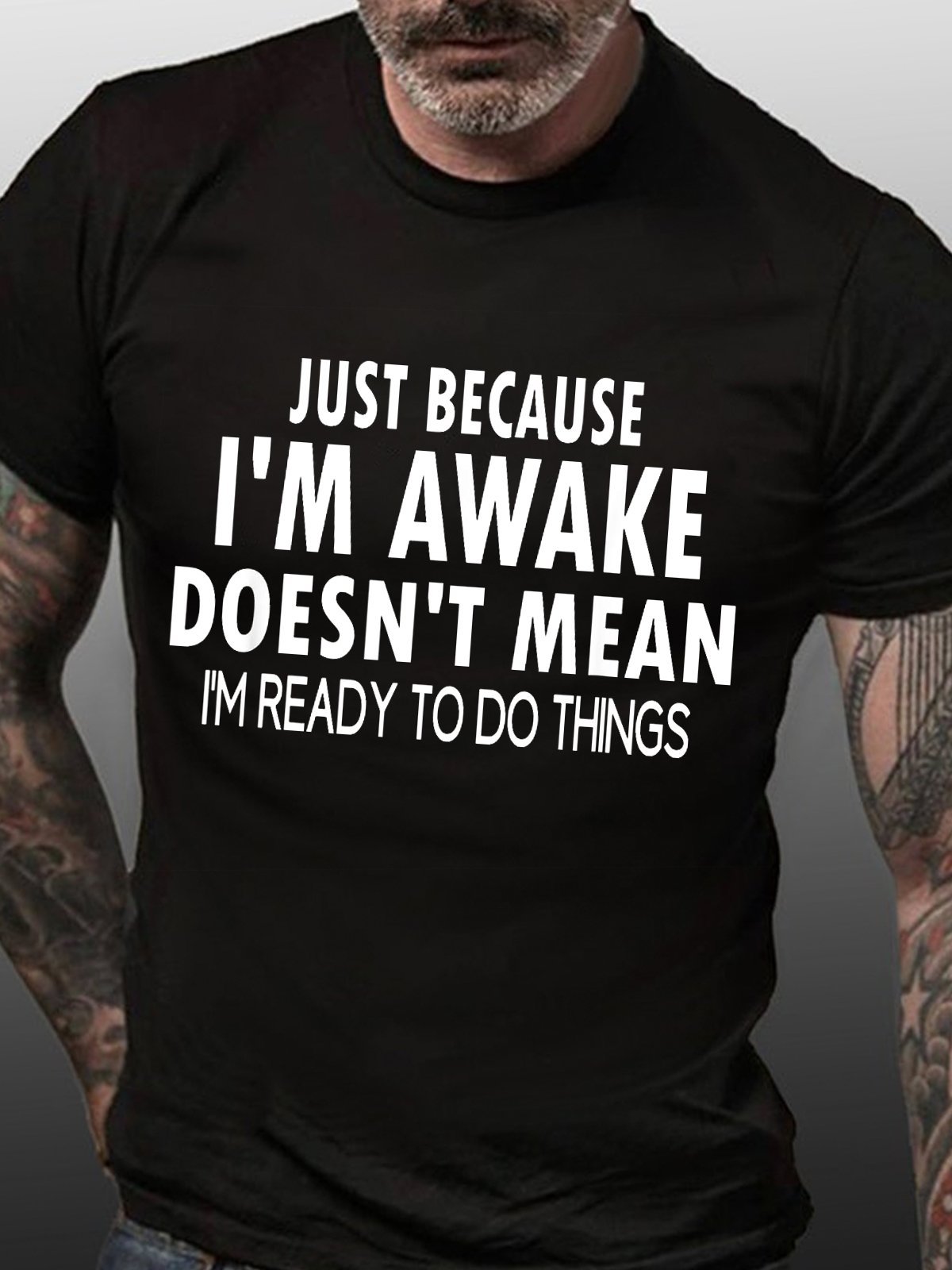 Men's Funny Word Just Because I'm Awake Text Letters Loose Casual T-Shirt
