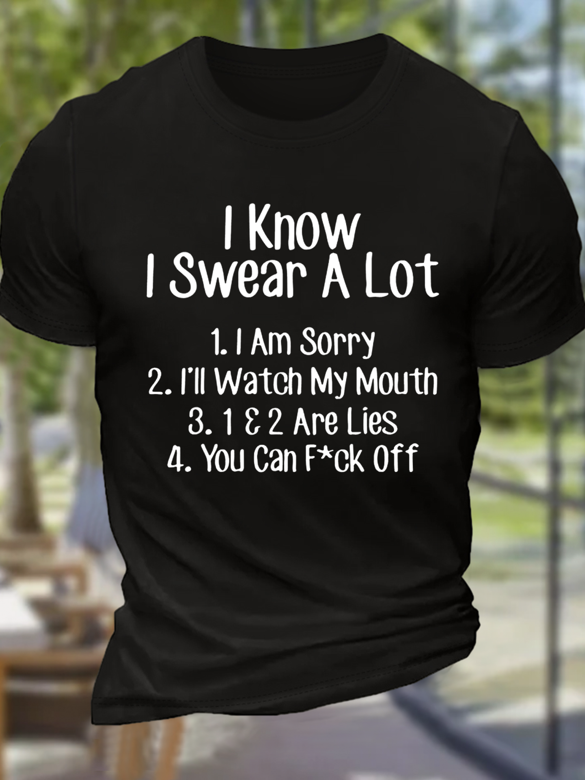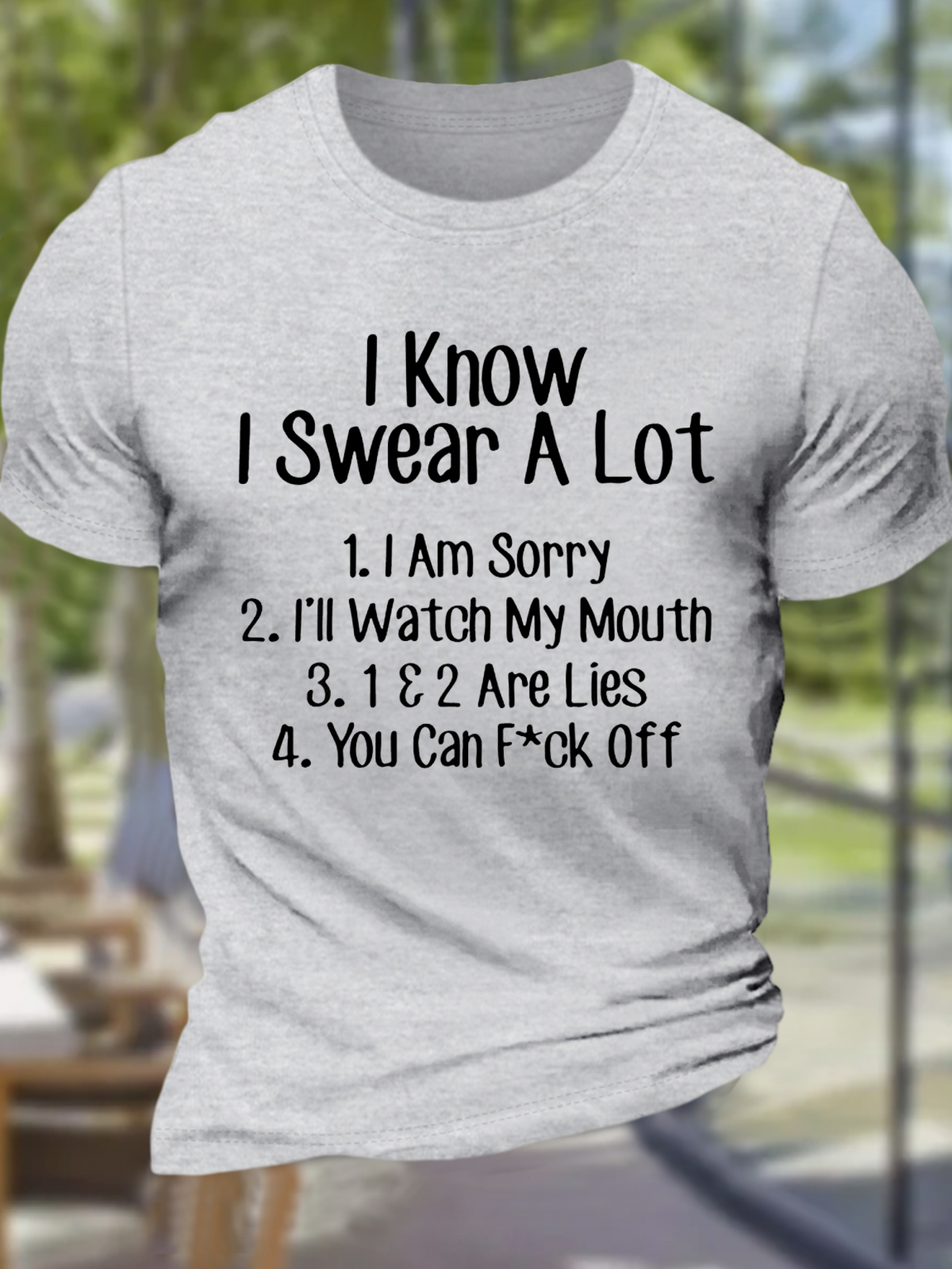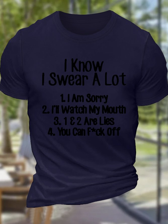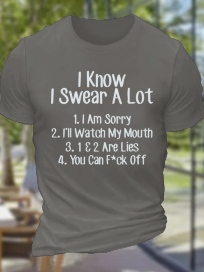 Men's Funny Sarcastic I Know I Swear A Lot You Can Fck Off Cotton Casual Crew Neck Loose T-Shirt