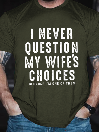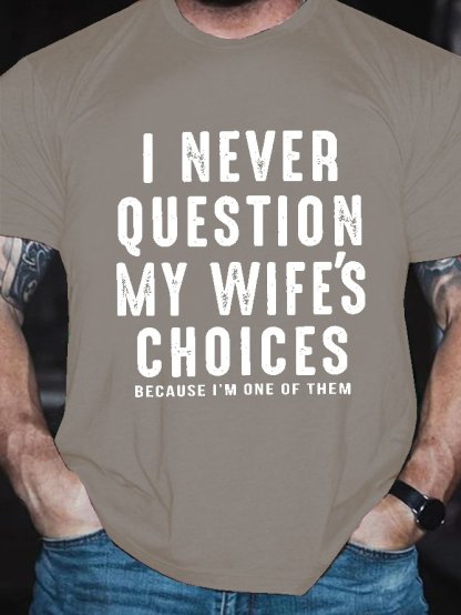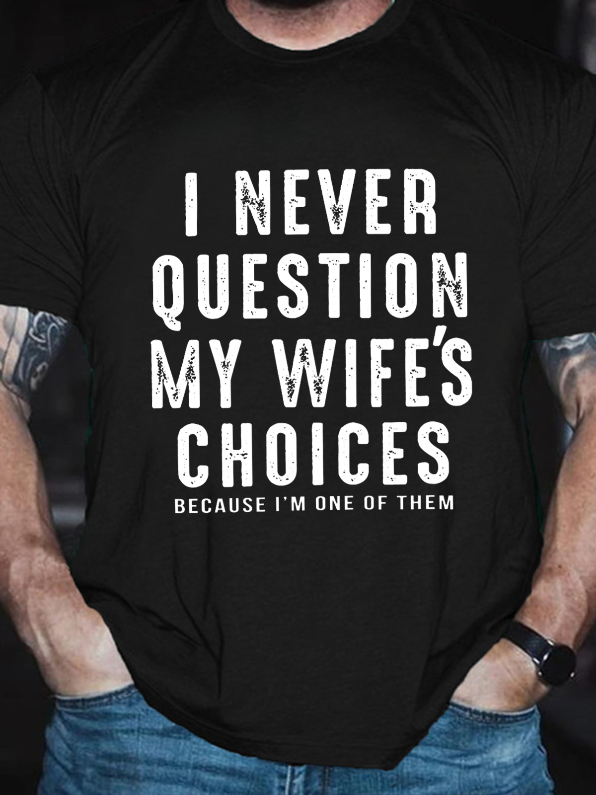 Men's Sarcastic I Never Question My Wife's Choices Cotton Casual Text Letters T-Shirt