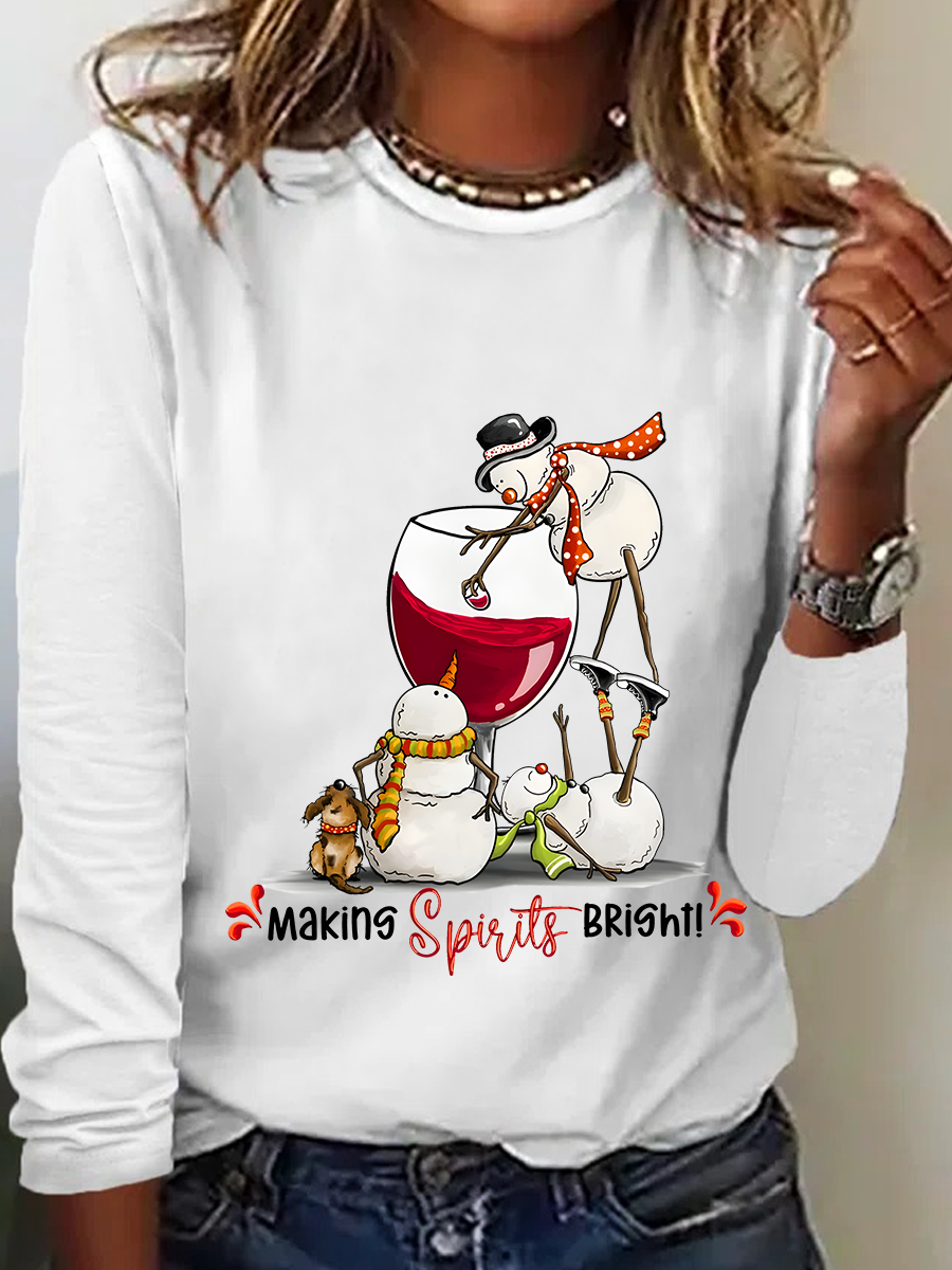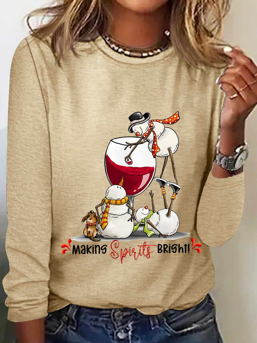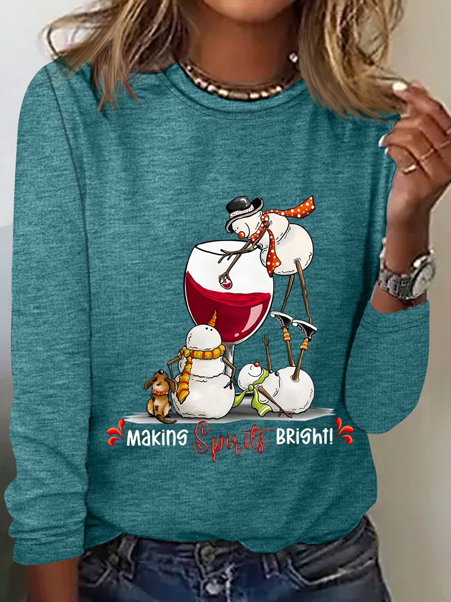 Snowman Wine Christmas Long Sleeve Shirt