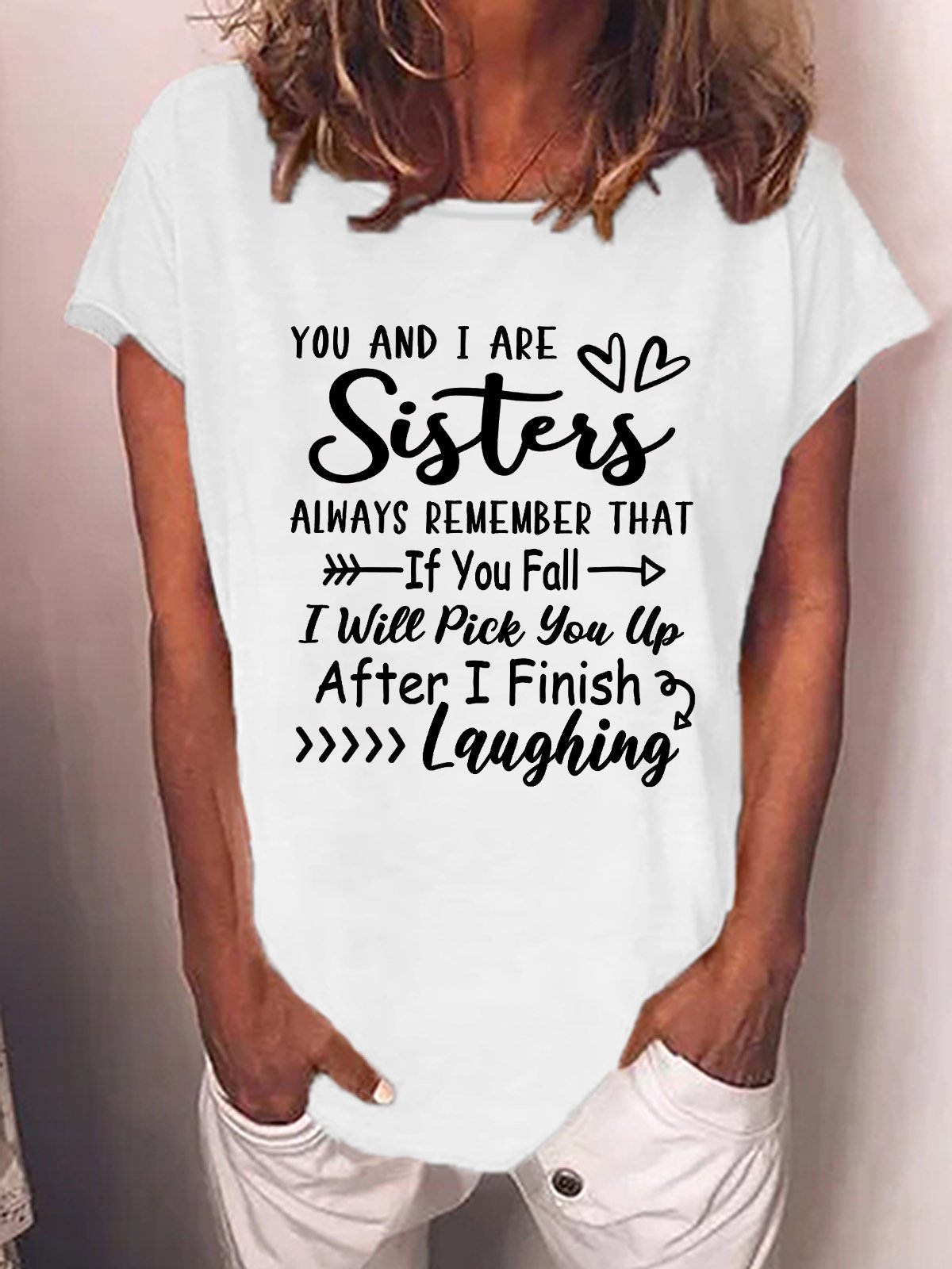Women's You And I Are Sisters Funny Text Letters Casual T-Shirt