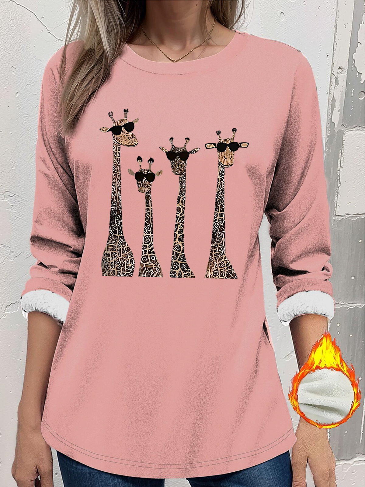 Women's Thickened Pullover Giraffe Pattern Casual Comfort Long Sleeve Crew Neck Regular Fit Top