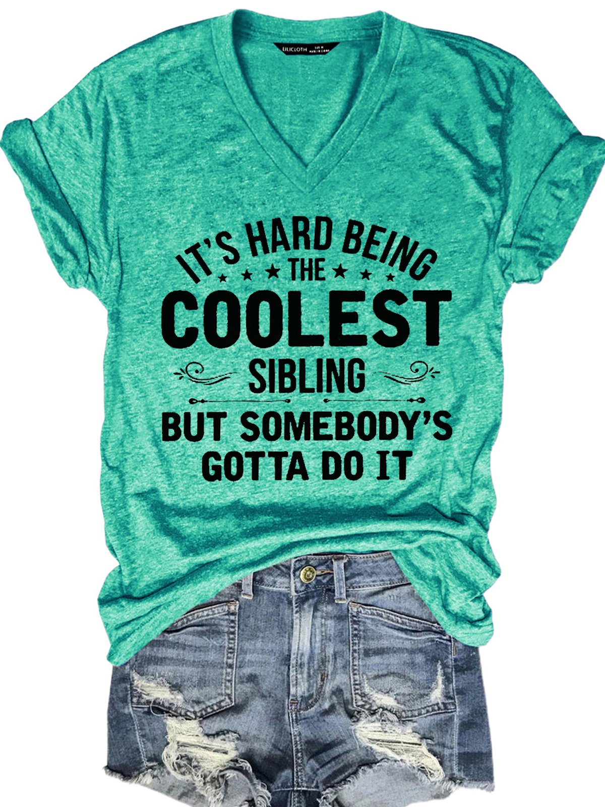 Womens Funny Silibing Letter Print V Neck T-Shirt
