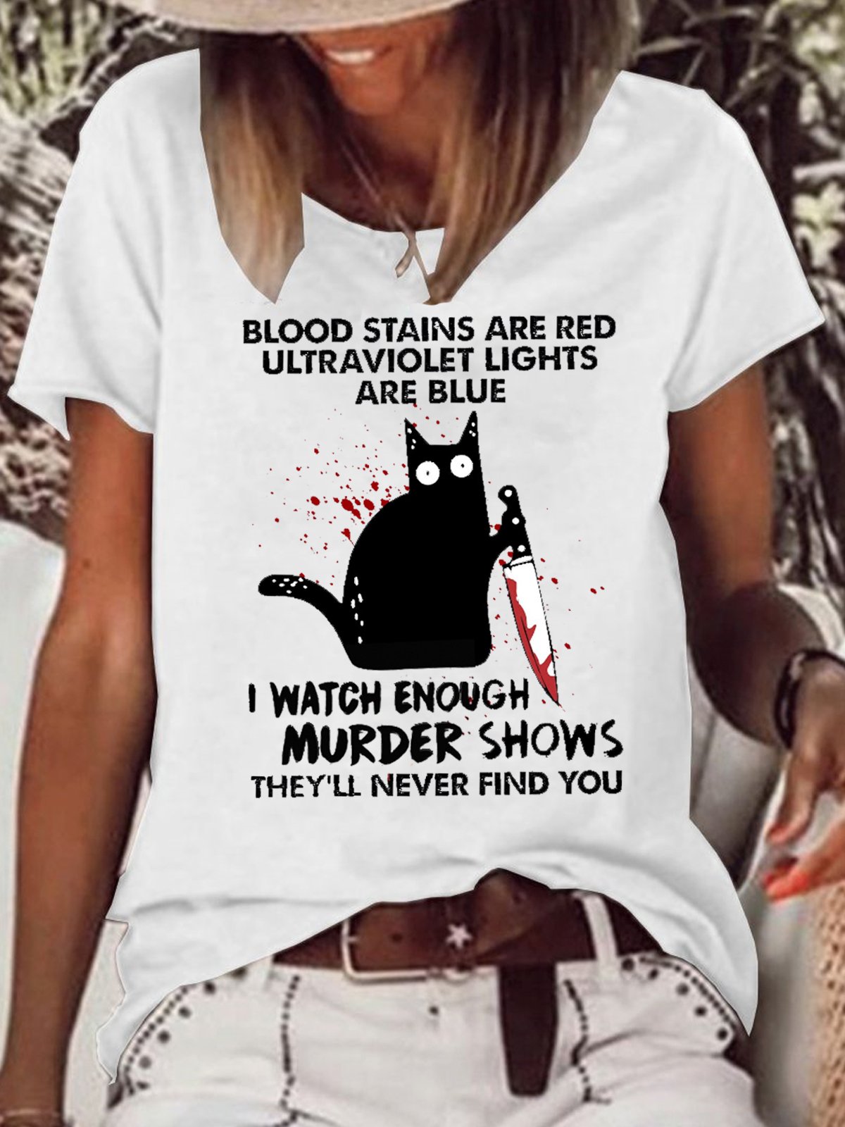 Womens Red Blue Sarcasm Letter Crew Neck Casual T-Shirt