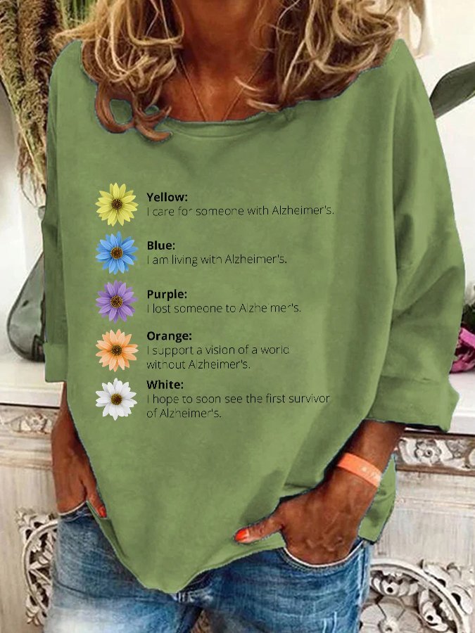 Alzheimer's Awareness Floral Print Casual Sweatshirt