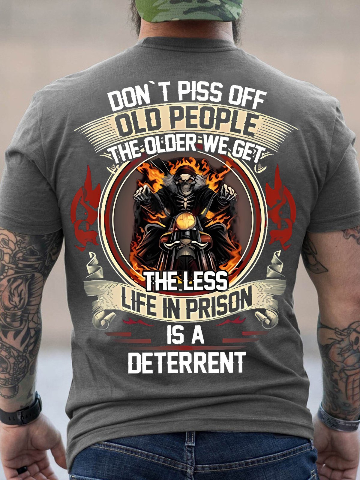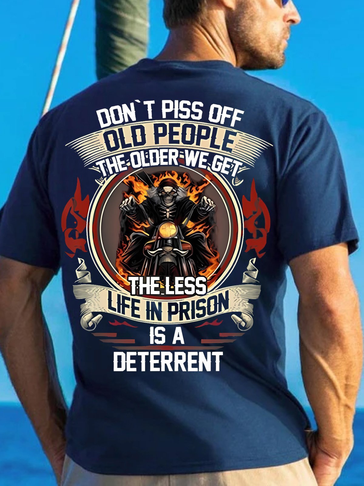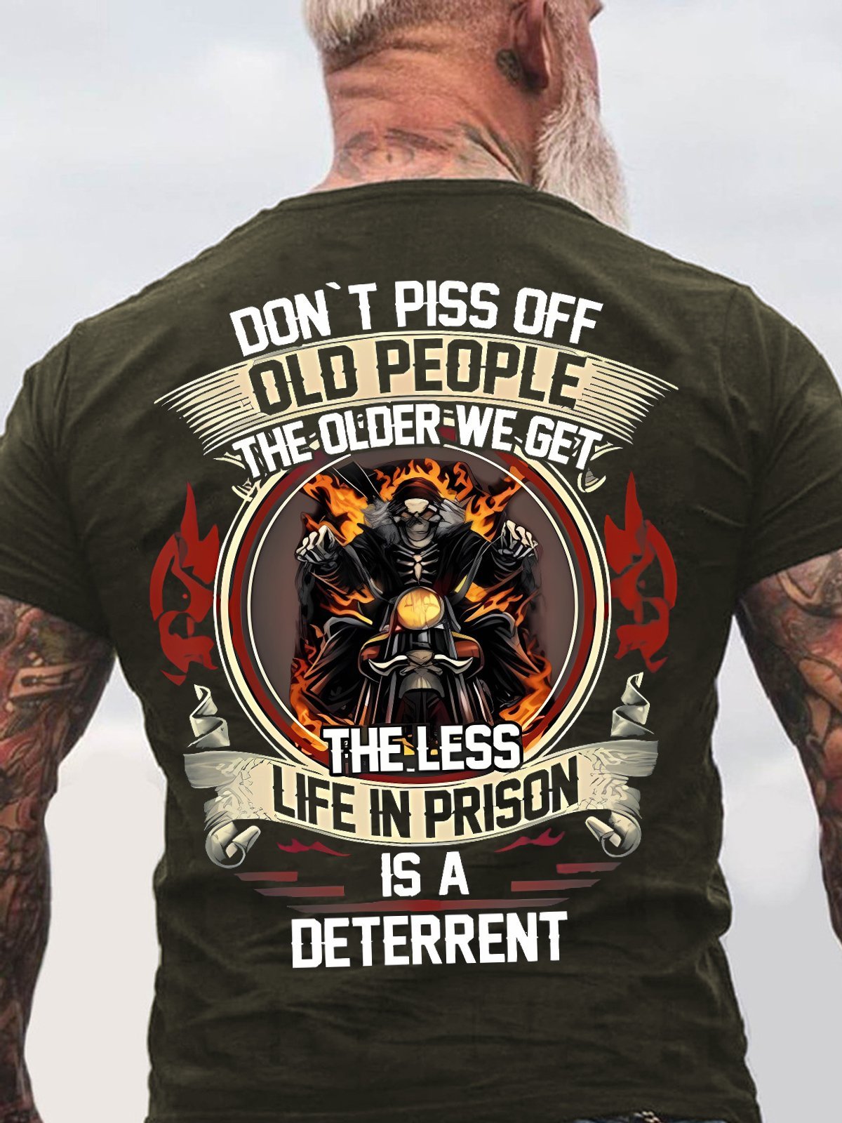 Mens Don't Piss Off Old People The Older We Get The Less Life Is A Deterrent Funny Text Letters Crew Neck Cotton T-Shirt