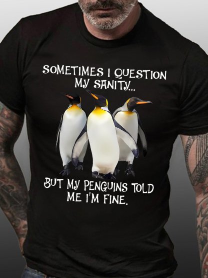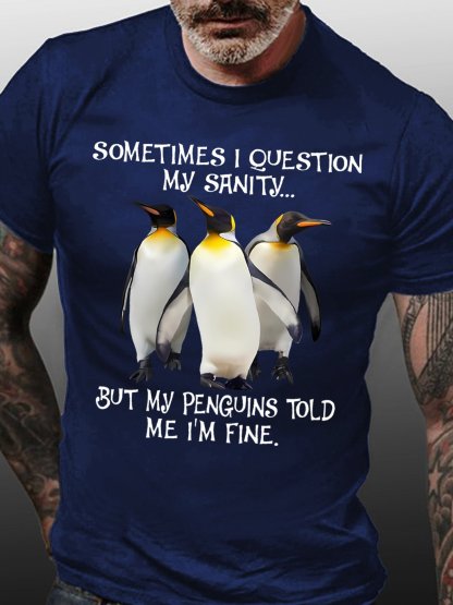 Sometimes I Question My Sanity But My Penguins Told Me I'm Fine Men's T-Shirt
