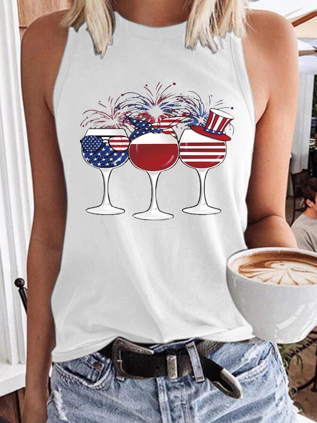 Women’s Blue & White Wine Of American Flag To Celebrate Tank Top