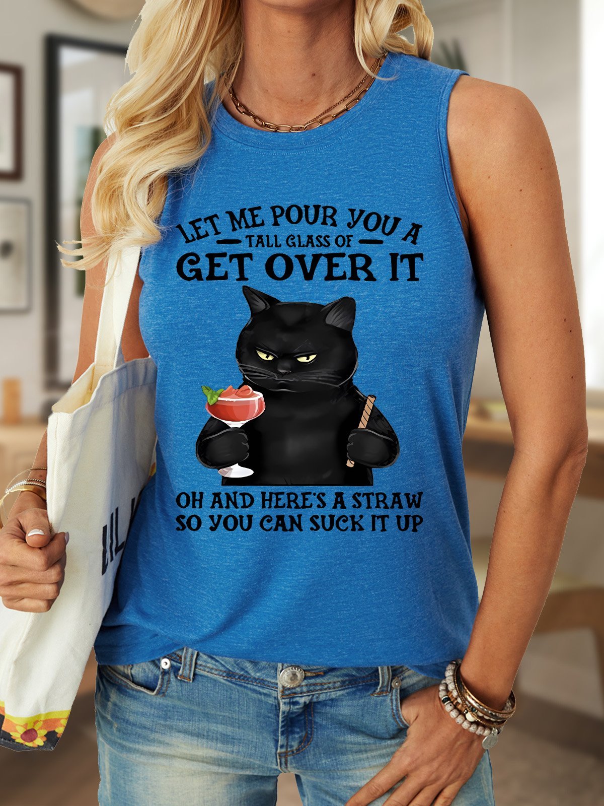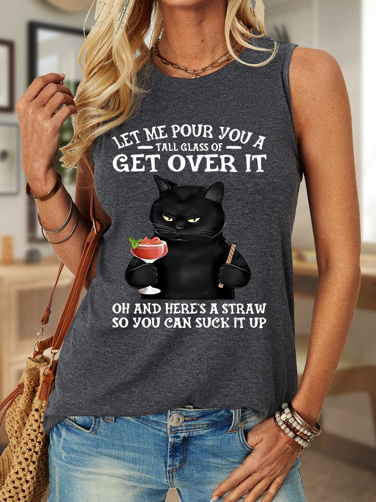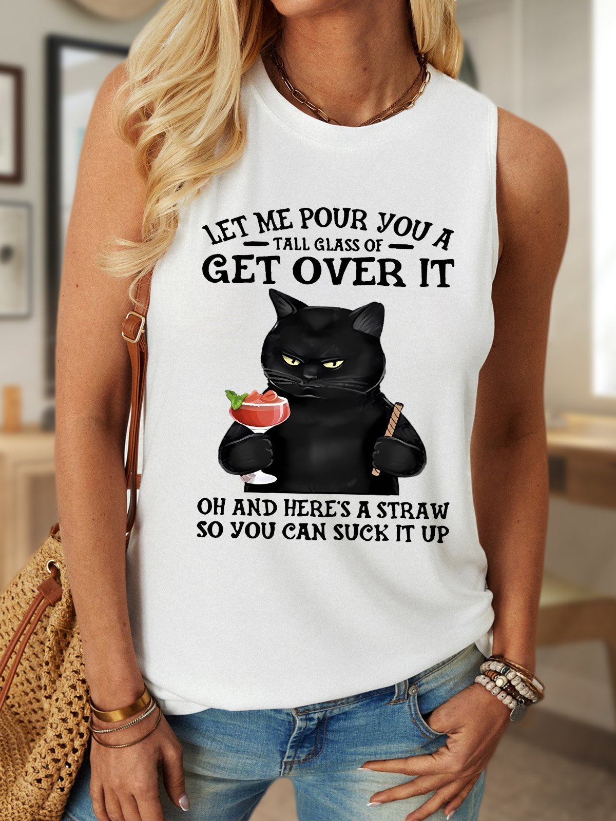 Let Me Pour You A Tall Glass Of Get Over It Oh And Here’s A Straw So You Can Suck It Up Women's Crew Neck Tank Top