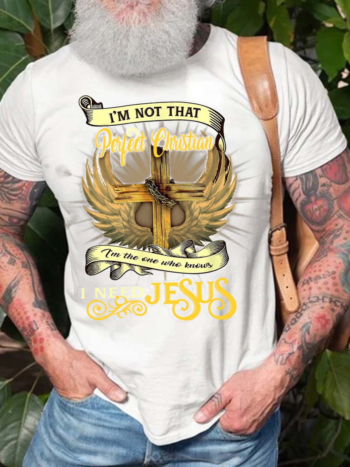 Men I’m Not That Perfect Christian I Need Jesus Cotton Crew Neck Text Letters T-Shirt