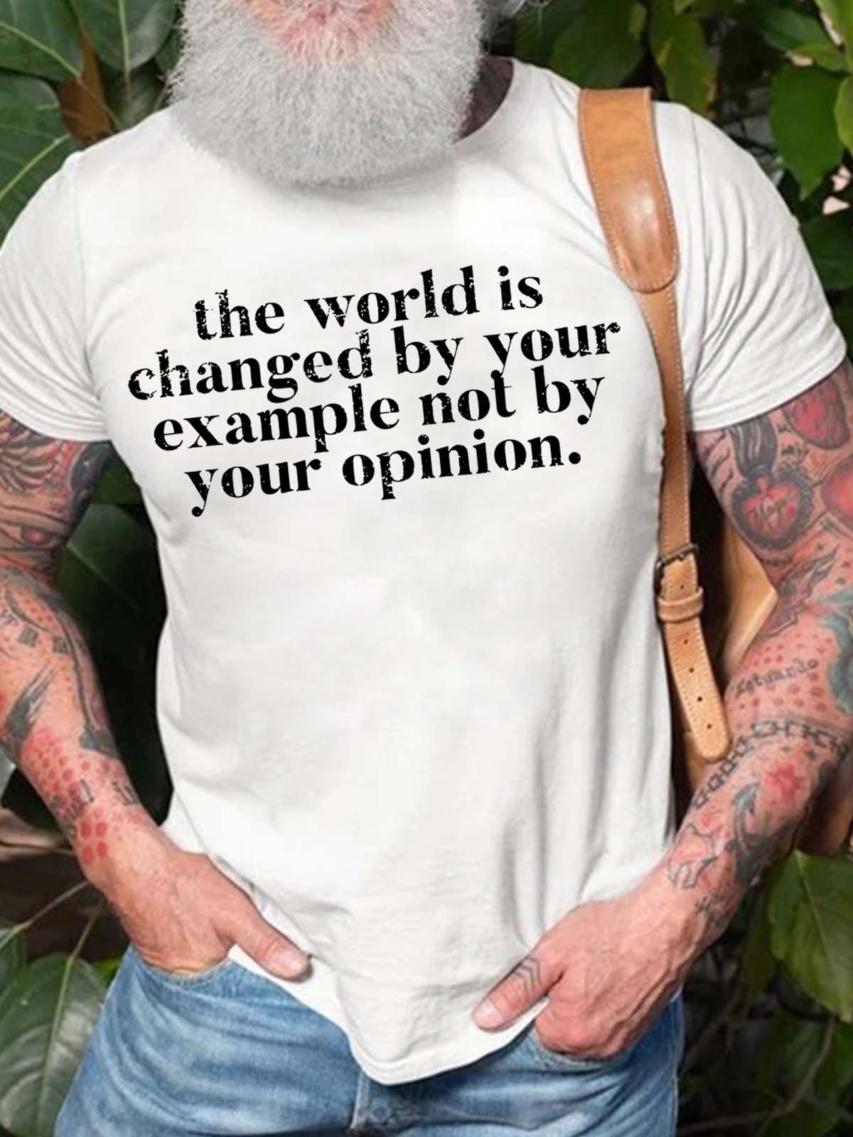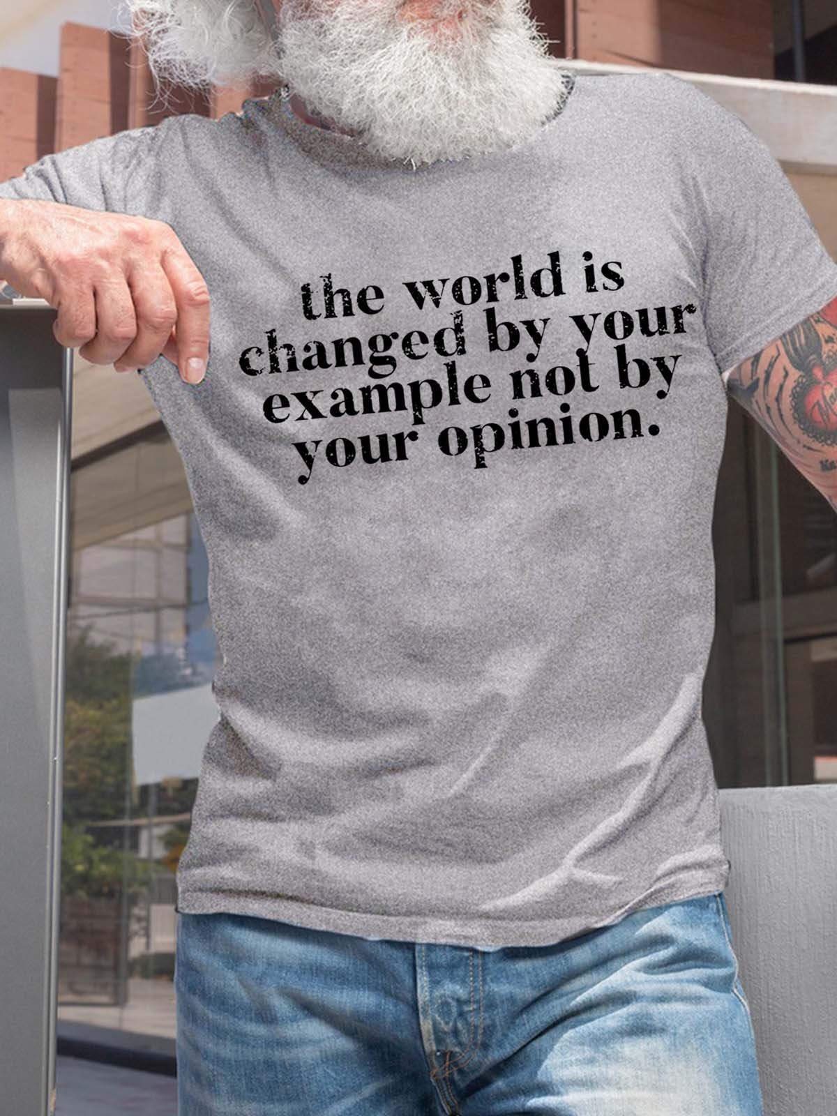 Men The World Is Changed By Your Example Not By Your Opinion Casual Text Letters T-Shirt
