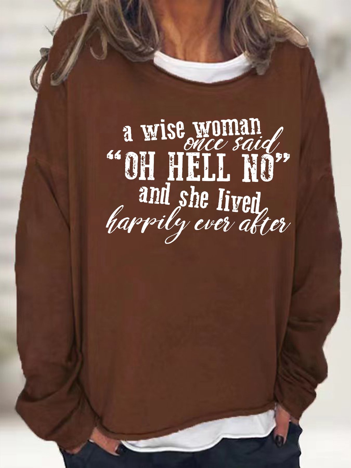 Women A Wise Woman Once Said Oh Hell No And She Lived Happily Ever After Loose Text Letters Casual Sweatshirt