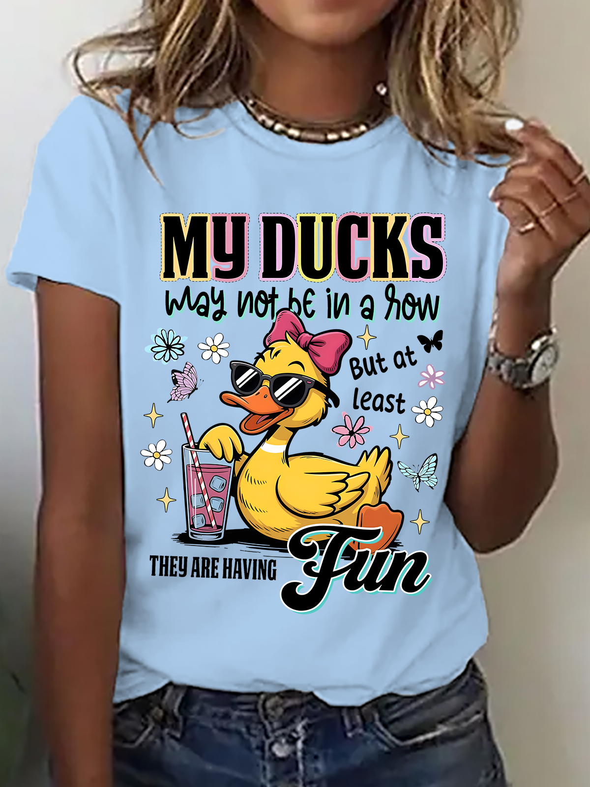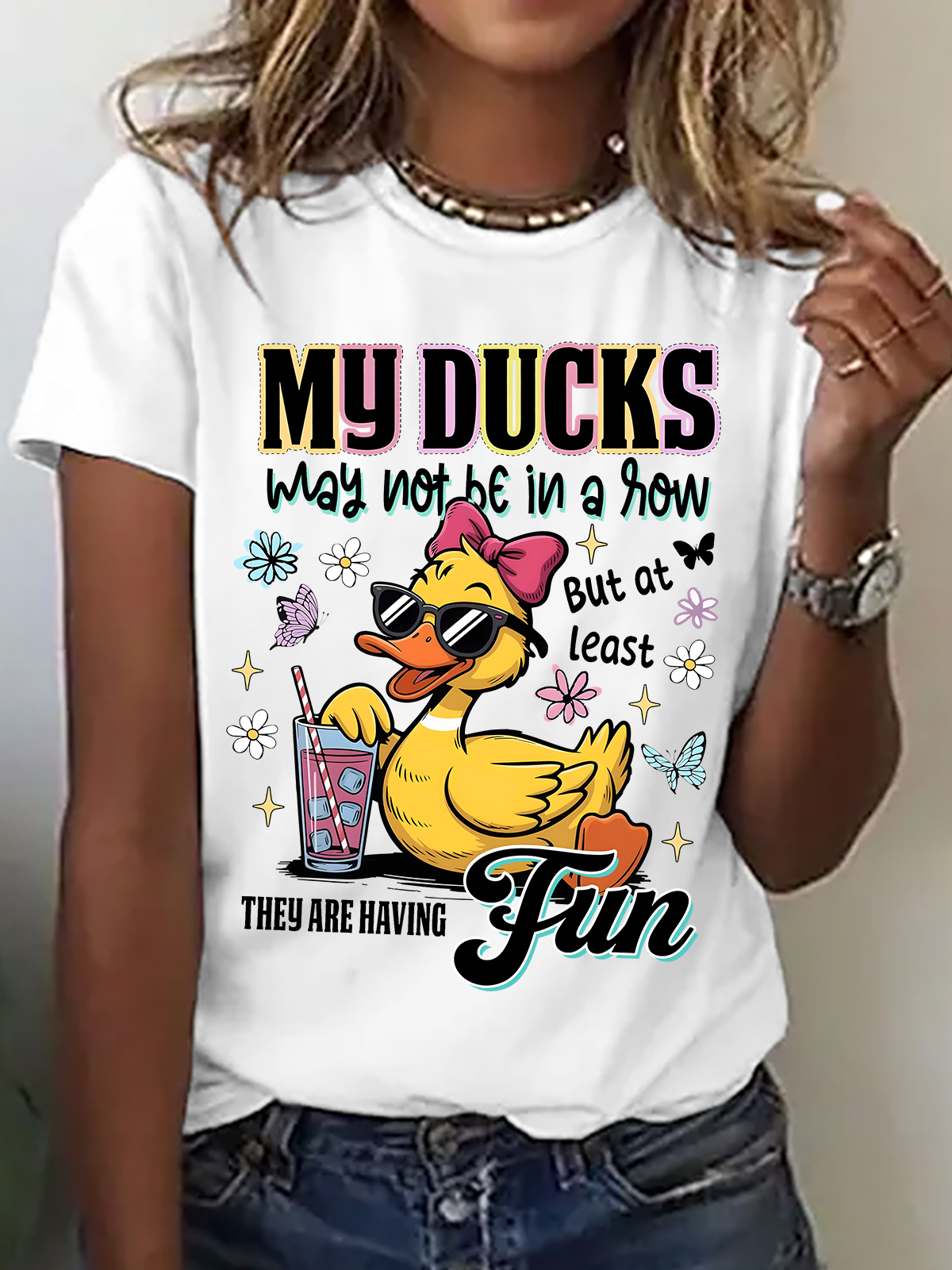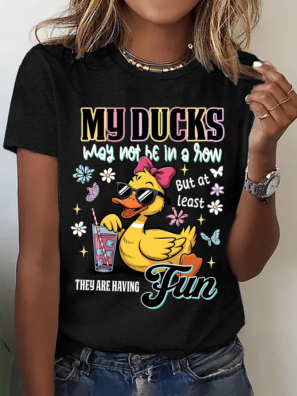 Funny Ducks Not in a Row Sarcastic Print T-Shirt