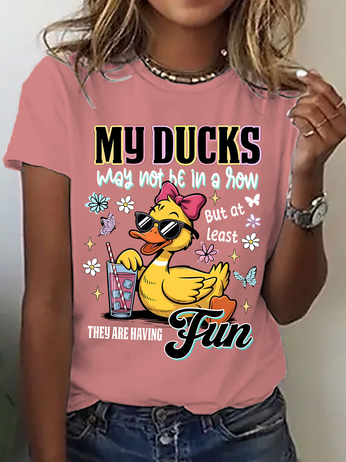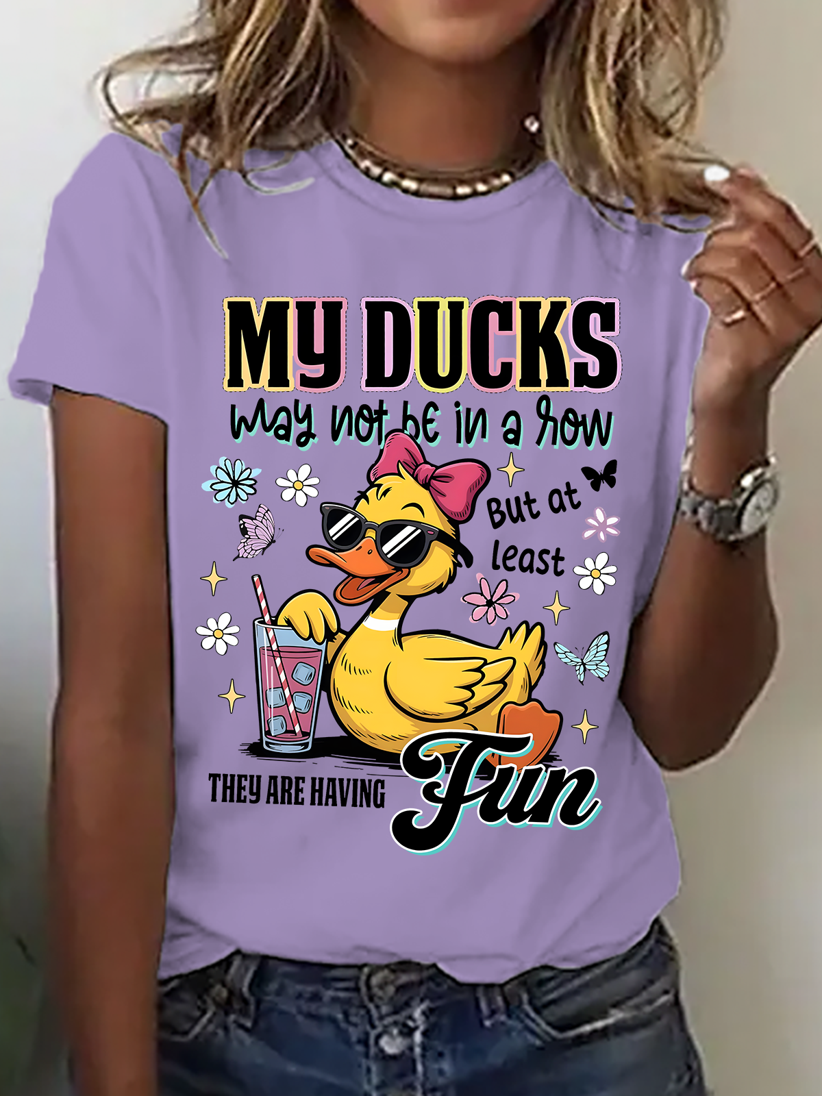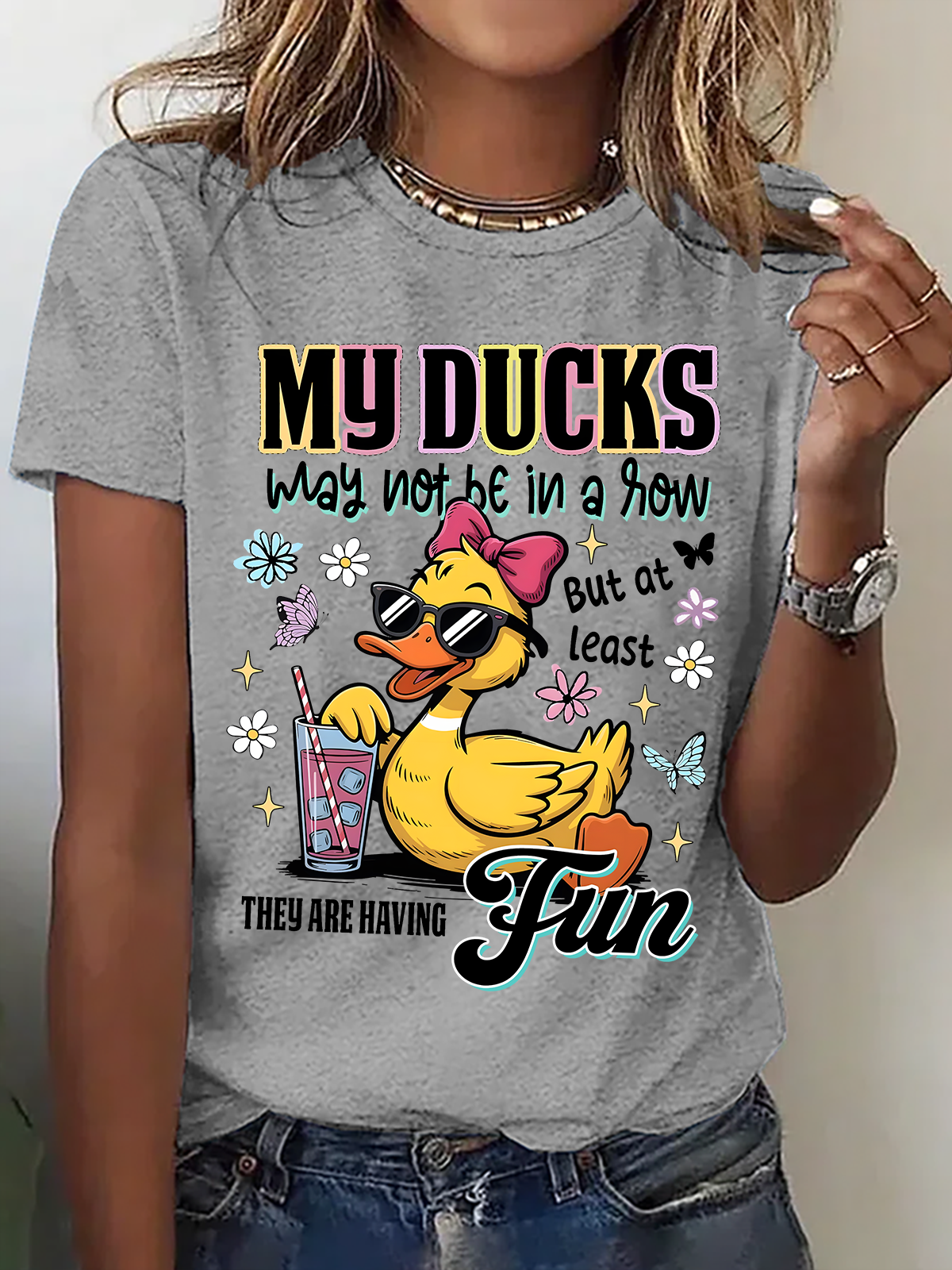 Funny Ducks Not in a Row Sarcastic Print T-Shirt
