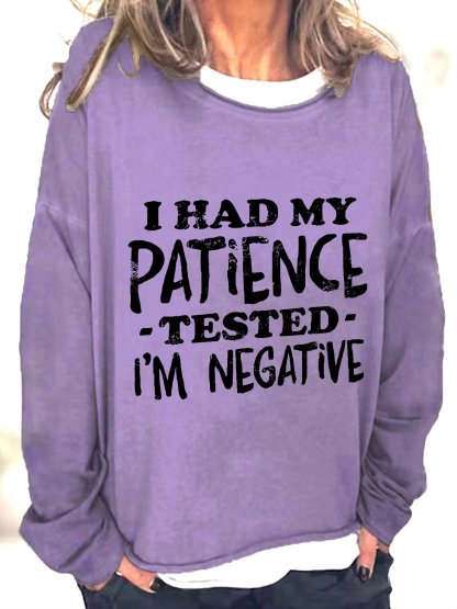 I Had My Patience Tested I'm Negative Casual Sweatshirt