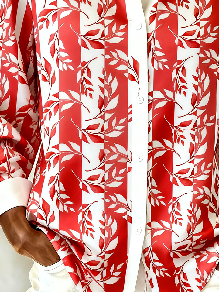 Loose Botanical Pattern Casual Shirt Collar Shirt