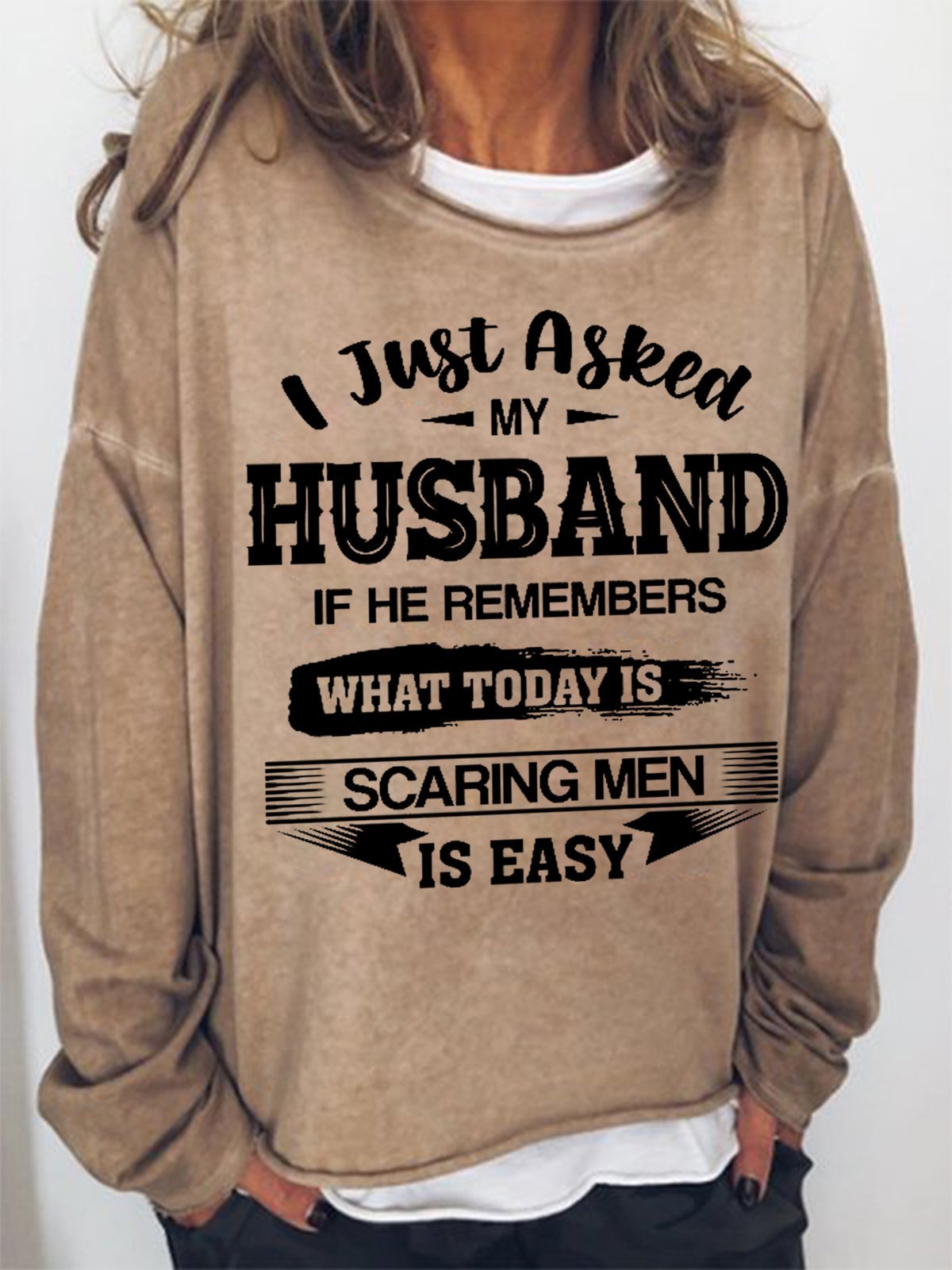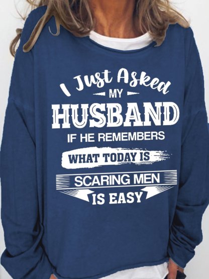 Women Funny I Just Asked My Husband If He Remembers What Today Is Scaring Men Is Easy Sweatshirt