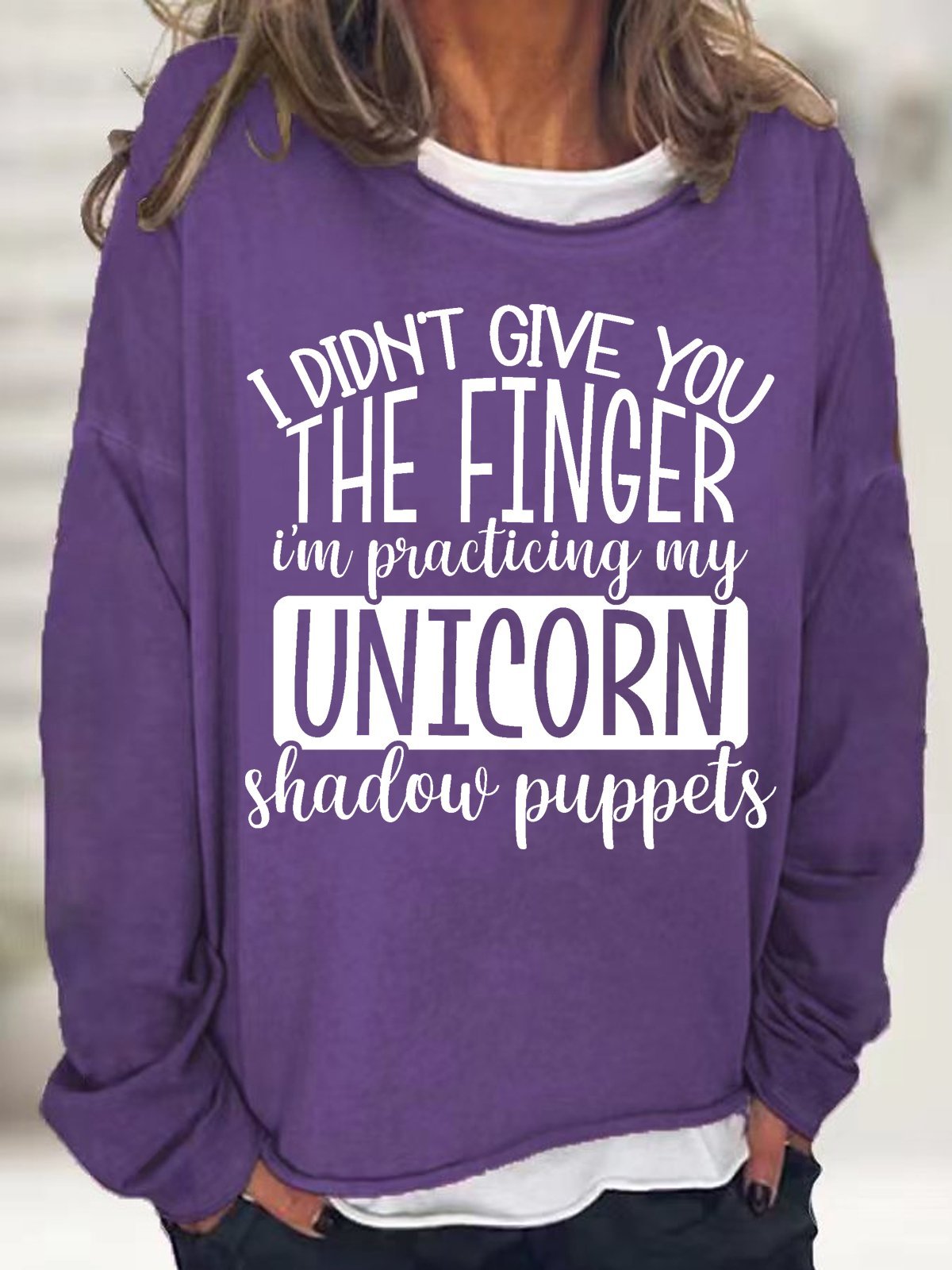 Women Sarcastic Saying I Didn't Give You The Finger I'm Practicing My Unicorn Shadow Puppets Sweatshirt