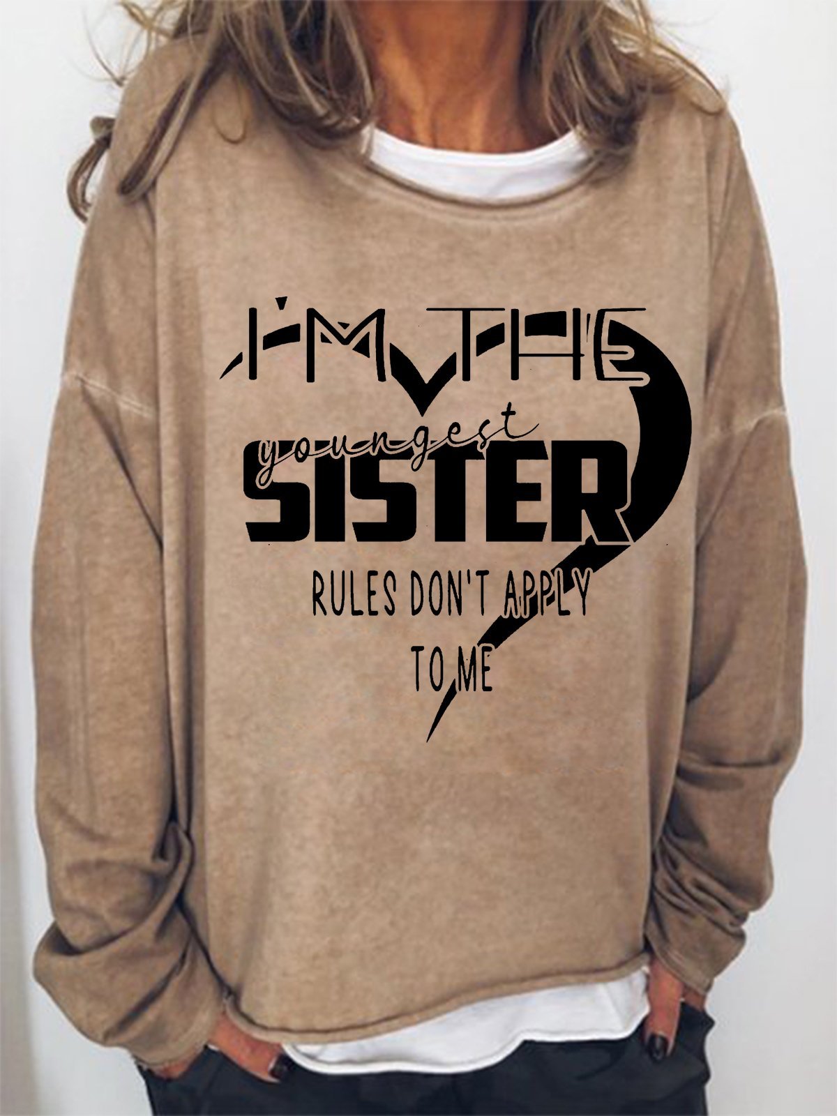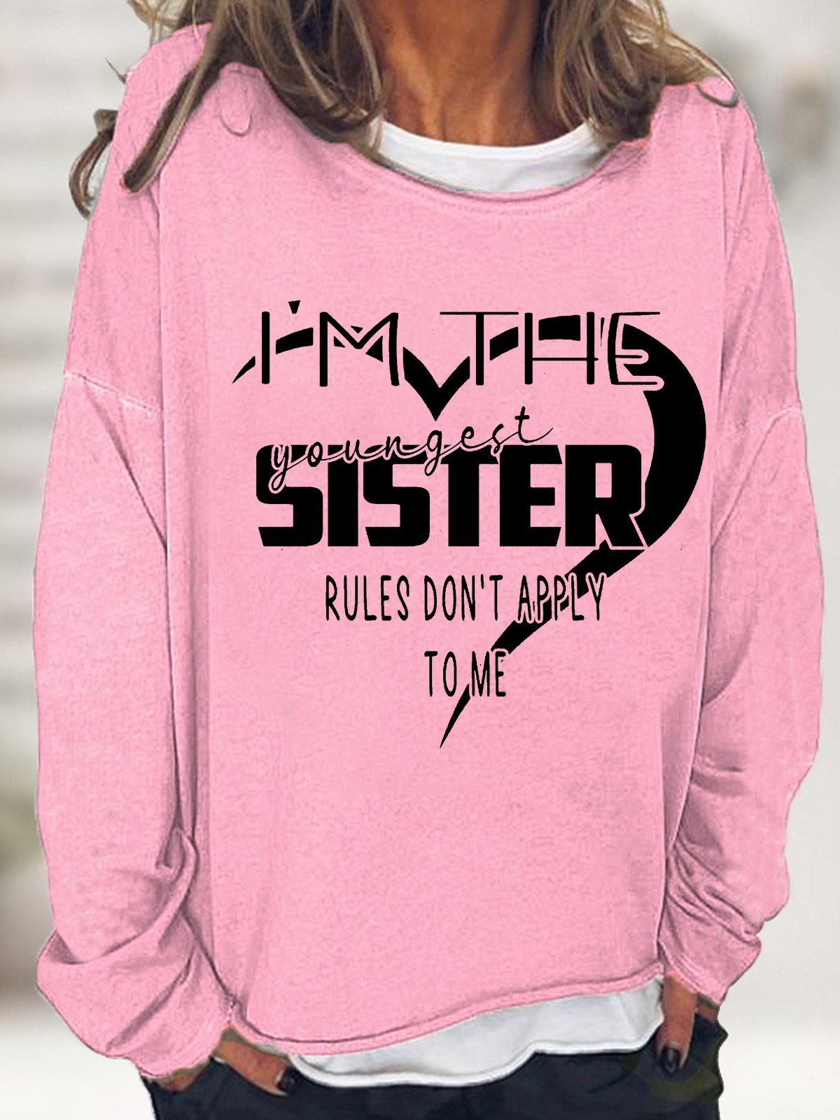 Women Funny I'm The Youngest Sister The Rules Don't Apply To Me Text Letters Simple Sweatshirt