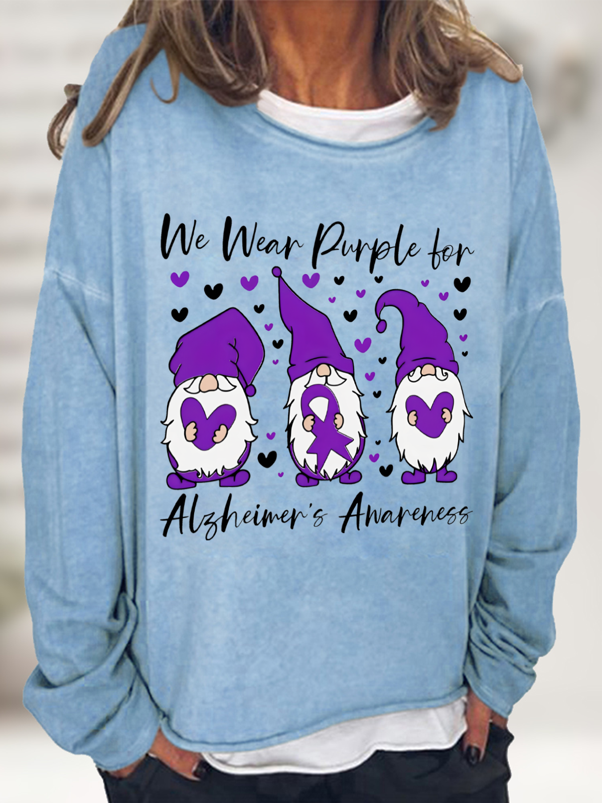 We Wear Purple For Alzheimer's Gnome Casual Sweatshirtw