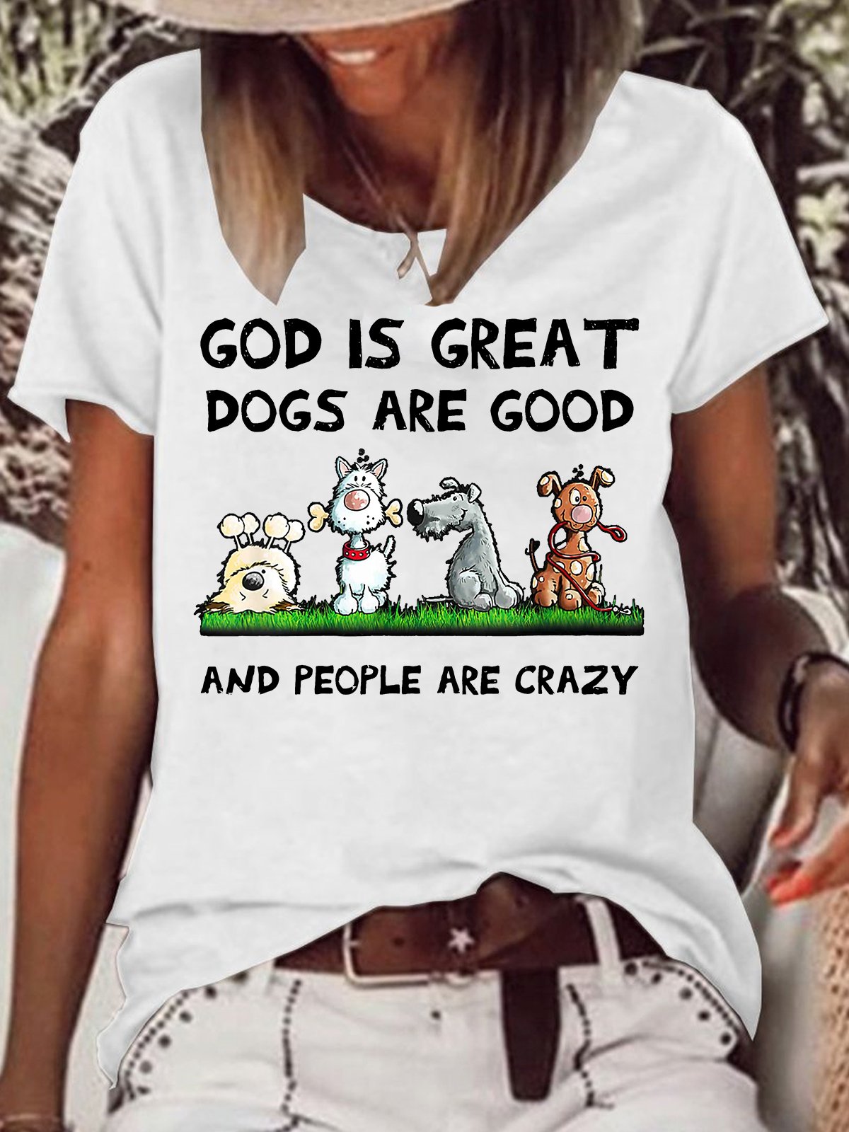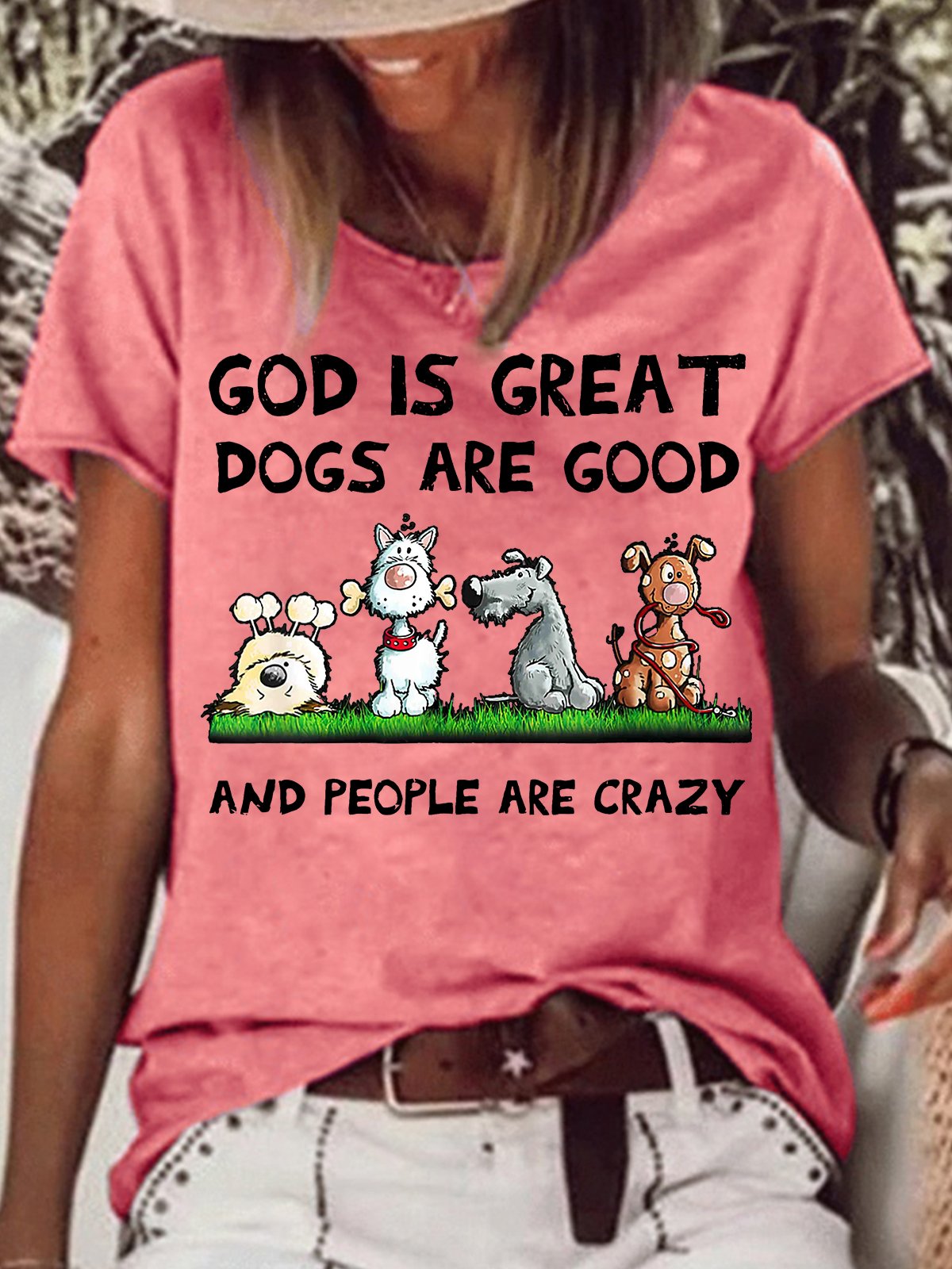 Womens God Is Great Dog Is Good And People Are Crazy Letters Casual T-Shirt