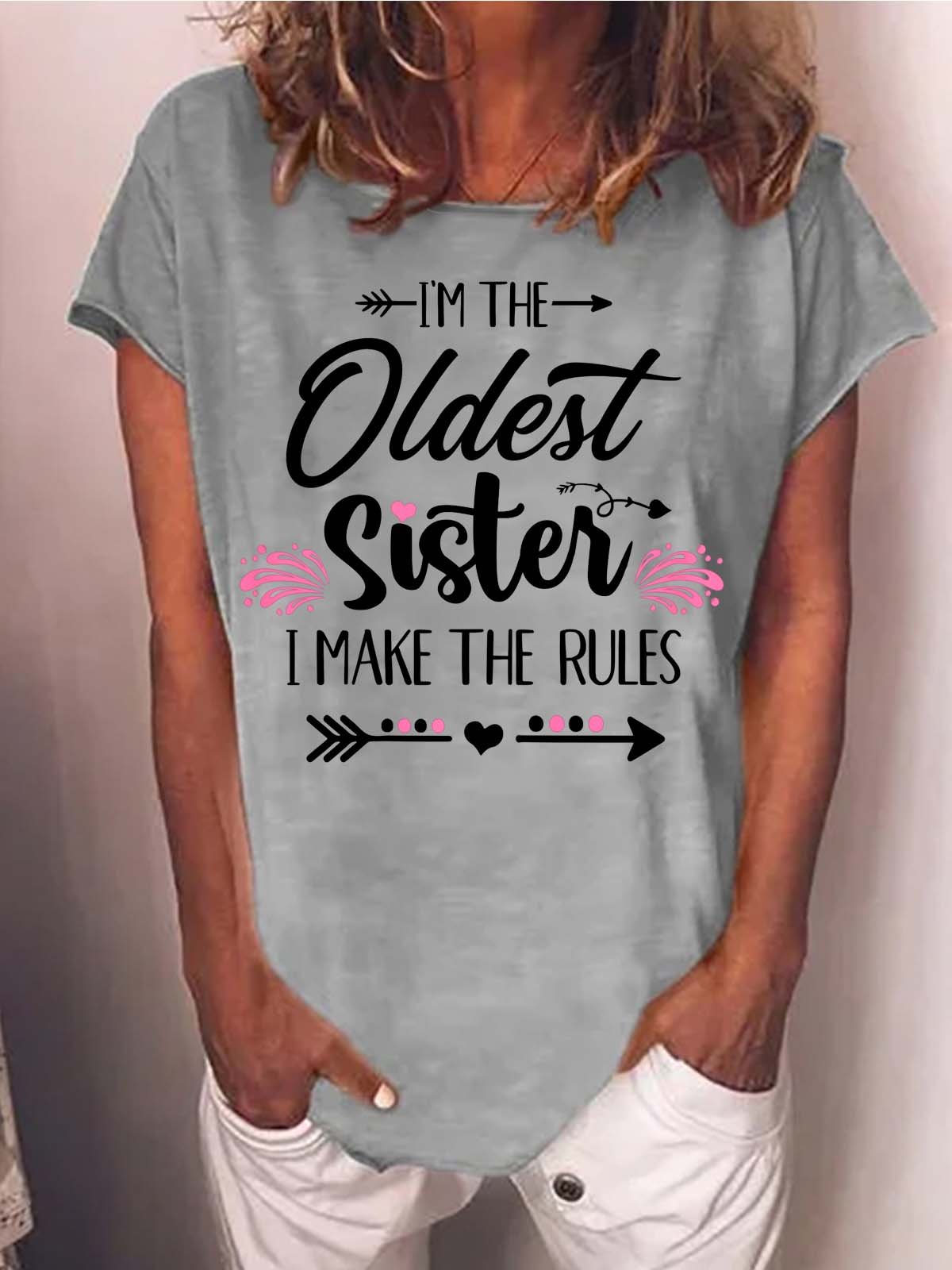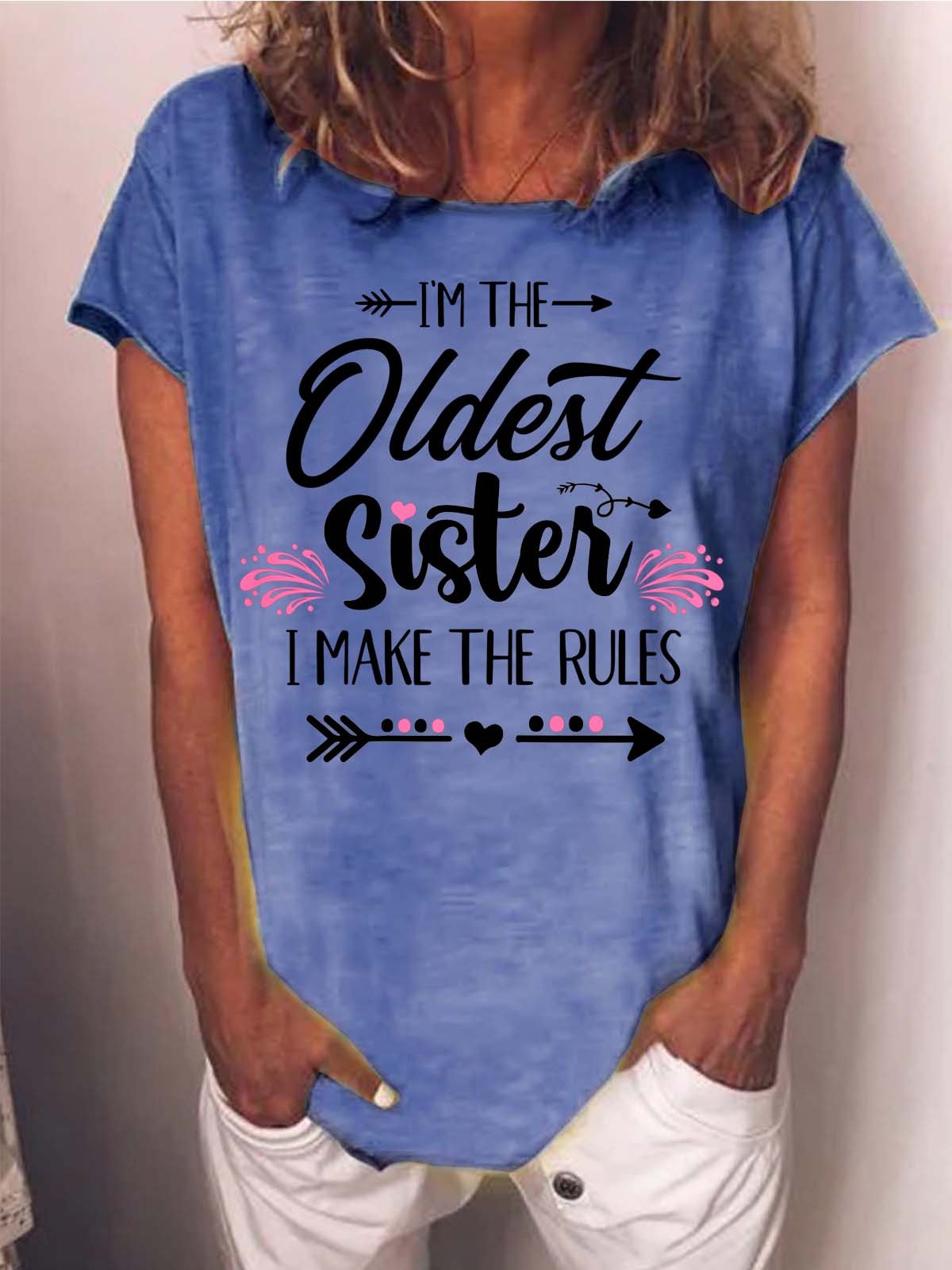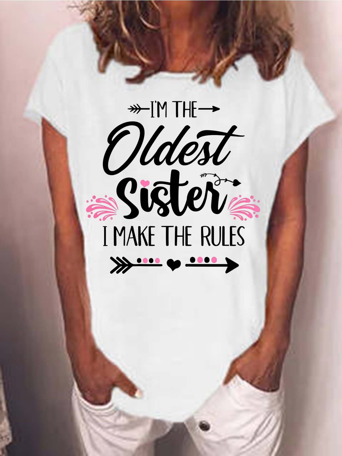 Women I’m The Oldest Sister I Make The Rules Text Letters Casual Loose T-Shirt