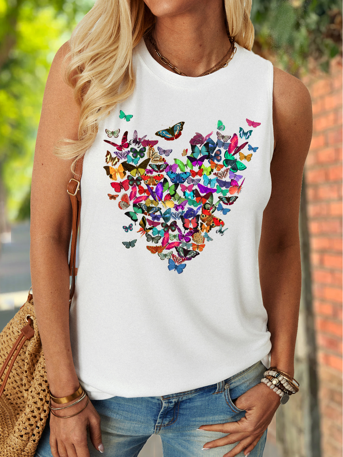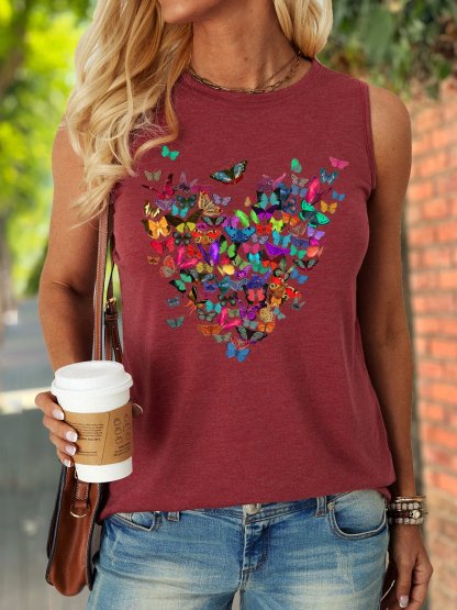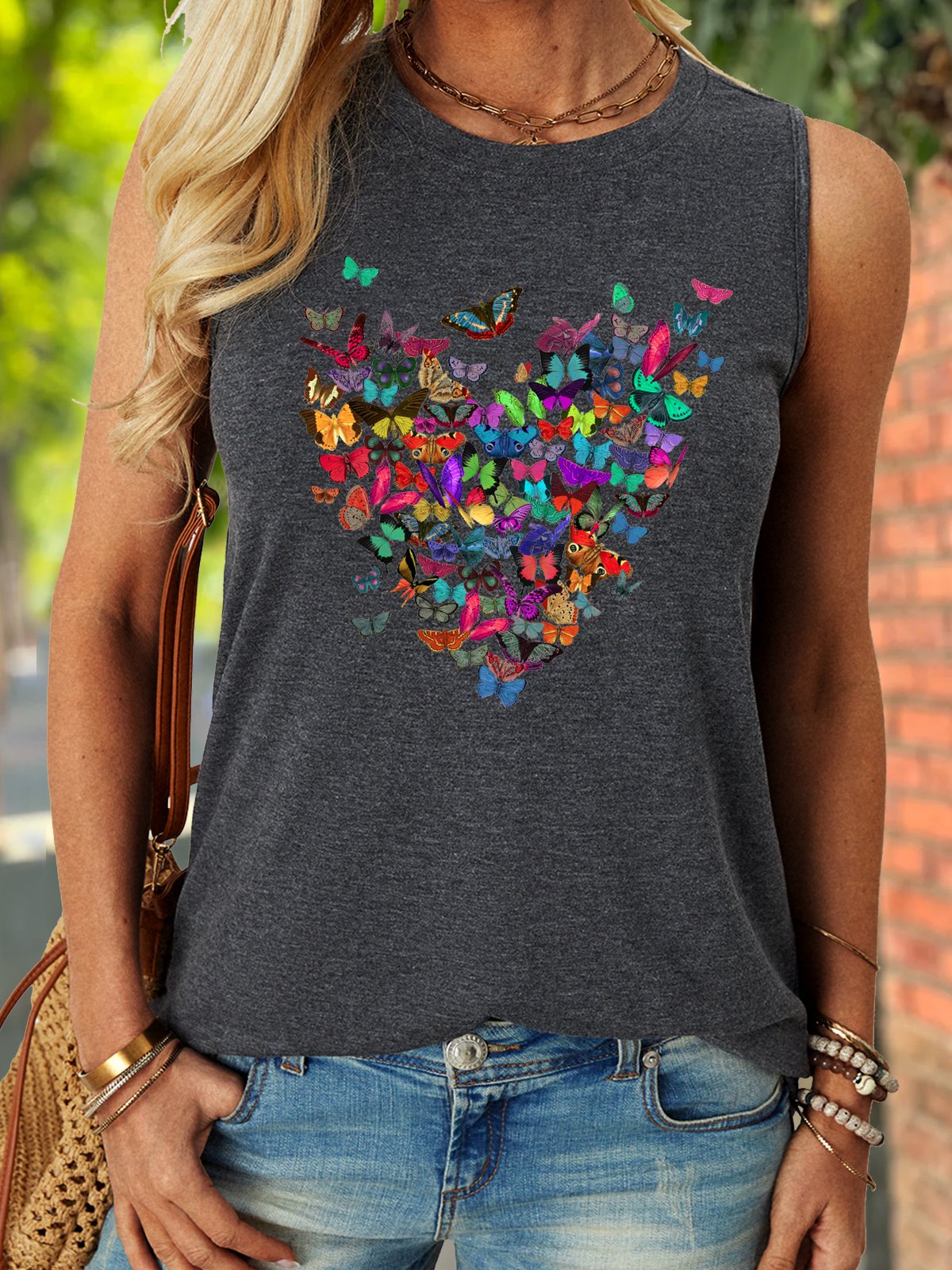 Women's Heart Butterfly Print Letters Crew Neck Casual Tank Top