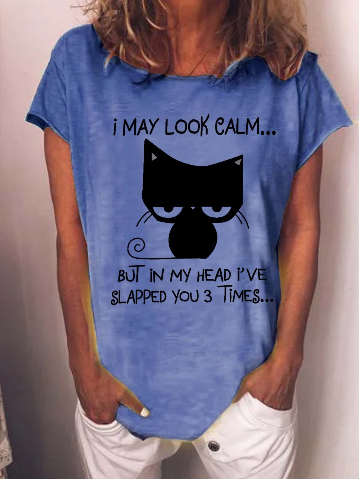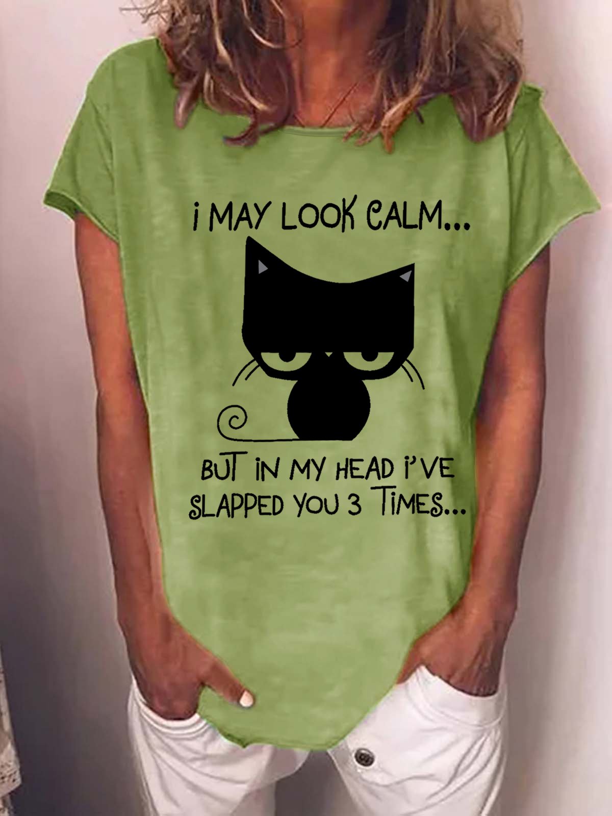 Women Funny Cat I May Look Calm Casual T-Shirt