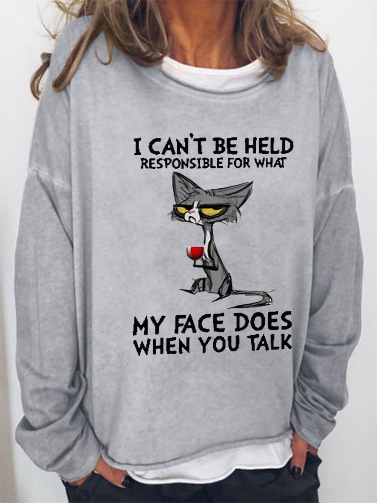 Women Funny Graphic I Can’t Be Held Responsible For What My Face Does When You Talk Cat Simple Sweatshirt