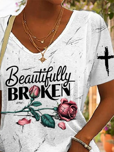 Women's Beautifully Broken: Strength in Imperfection V Neck Casual T-Shirt