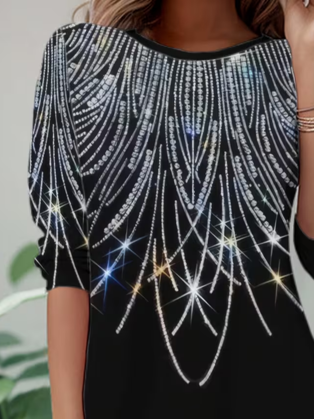 Women's Long Sleeve T-shirt Spring/Fall Black Abstract Jersey Crew Neck Daily Going Out Casual Top