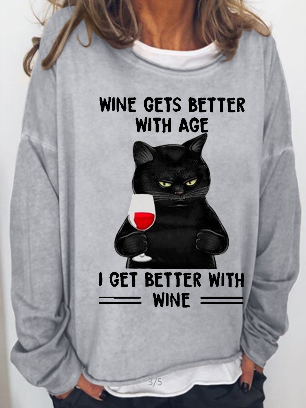 Womens Black Cat Wine Gets Better With Age I Get Better With Wine Casual Sweatshirt