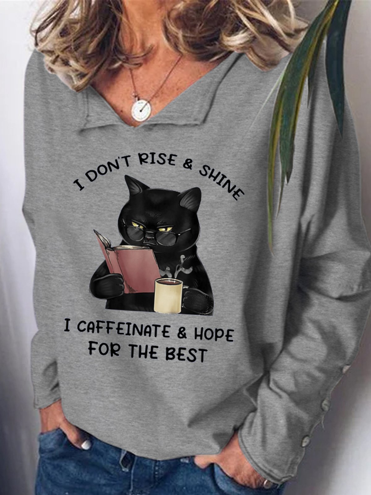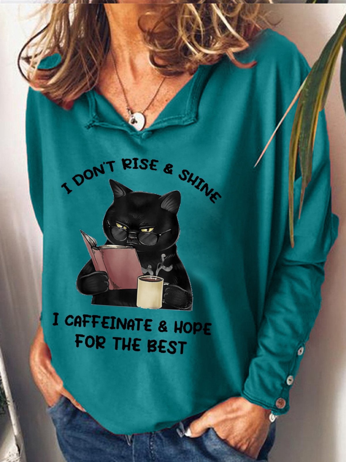 Womens I Don't Rise & Shine, I Cafeinate & Hope For The Best Cat Lover Casual Sweatshirt