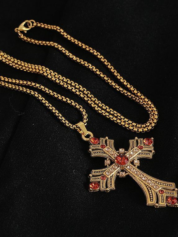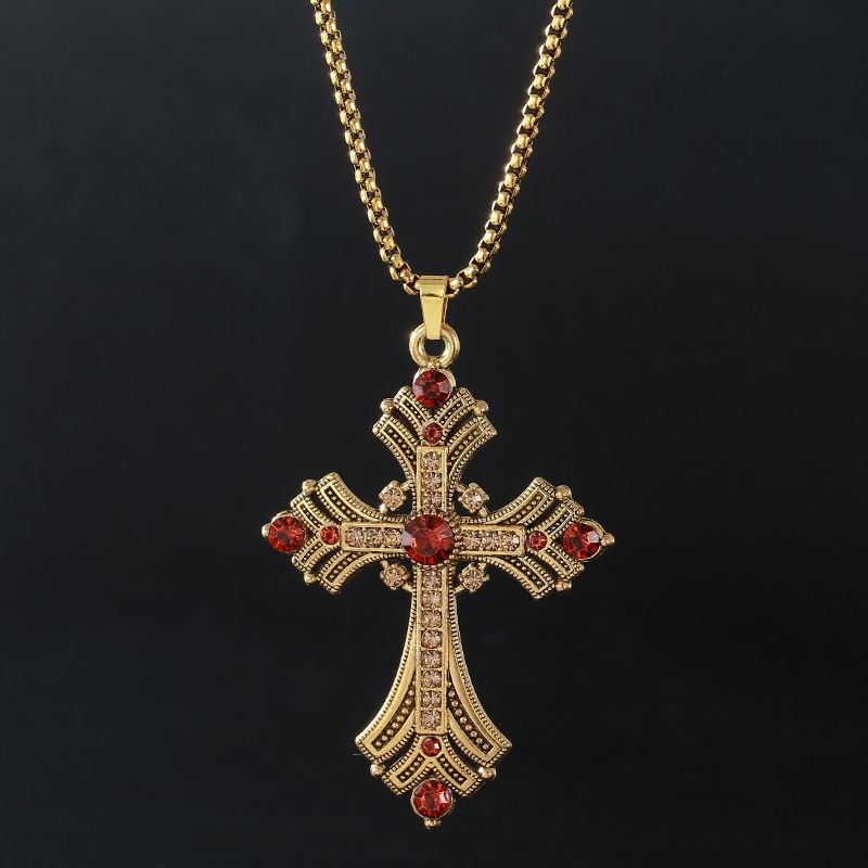 2025 New Retro Diamond Necklace Rhinestone Long Cross Pendant Sweater Chain Fashion Advanced Punk Necklace