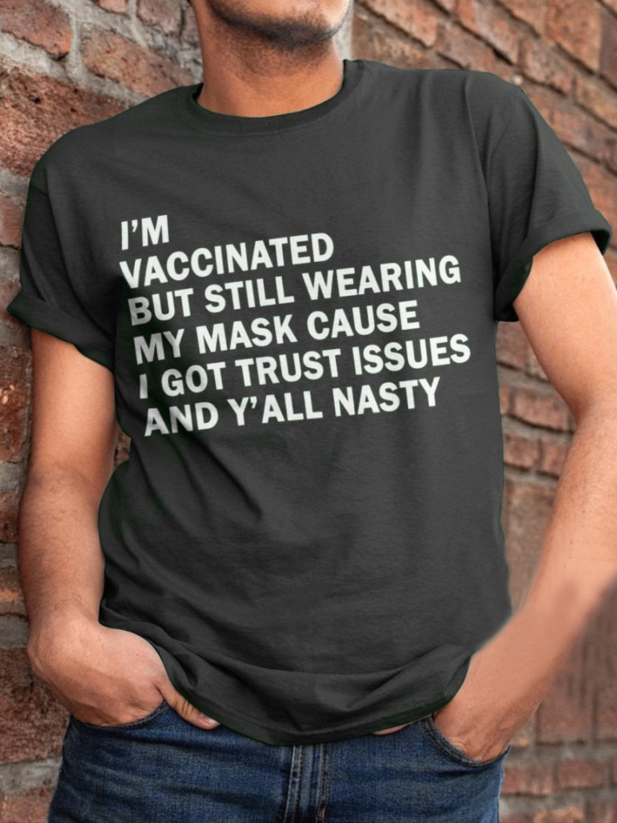 I’m vaccinated but still wearing my mask cause i got trust issues and y’all nasty Short Sleeve Cotton Short Sleeve T-Shirt