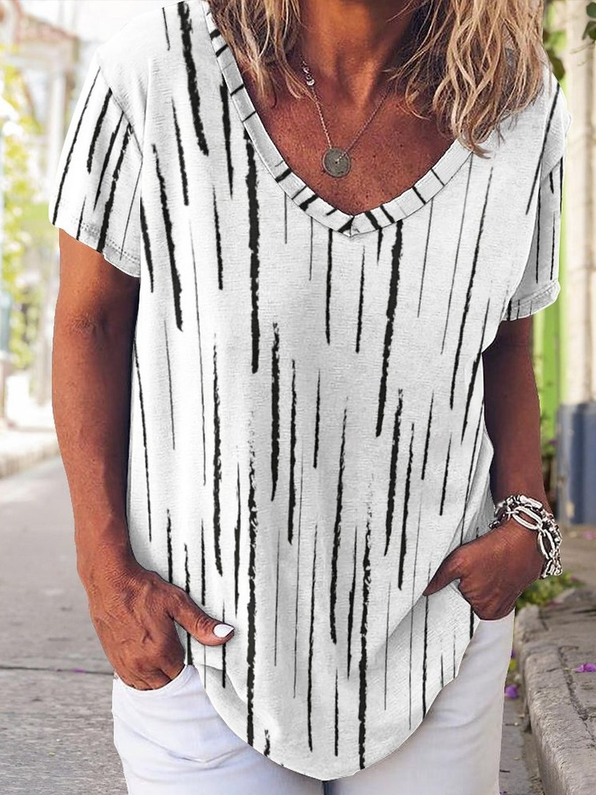Casual Striped Funny V Neck Short Sleeve T-Shirt