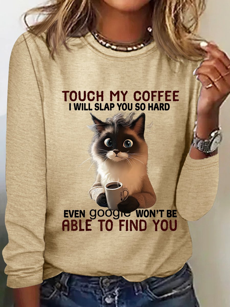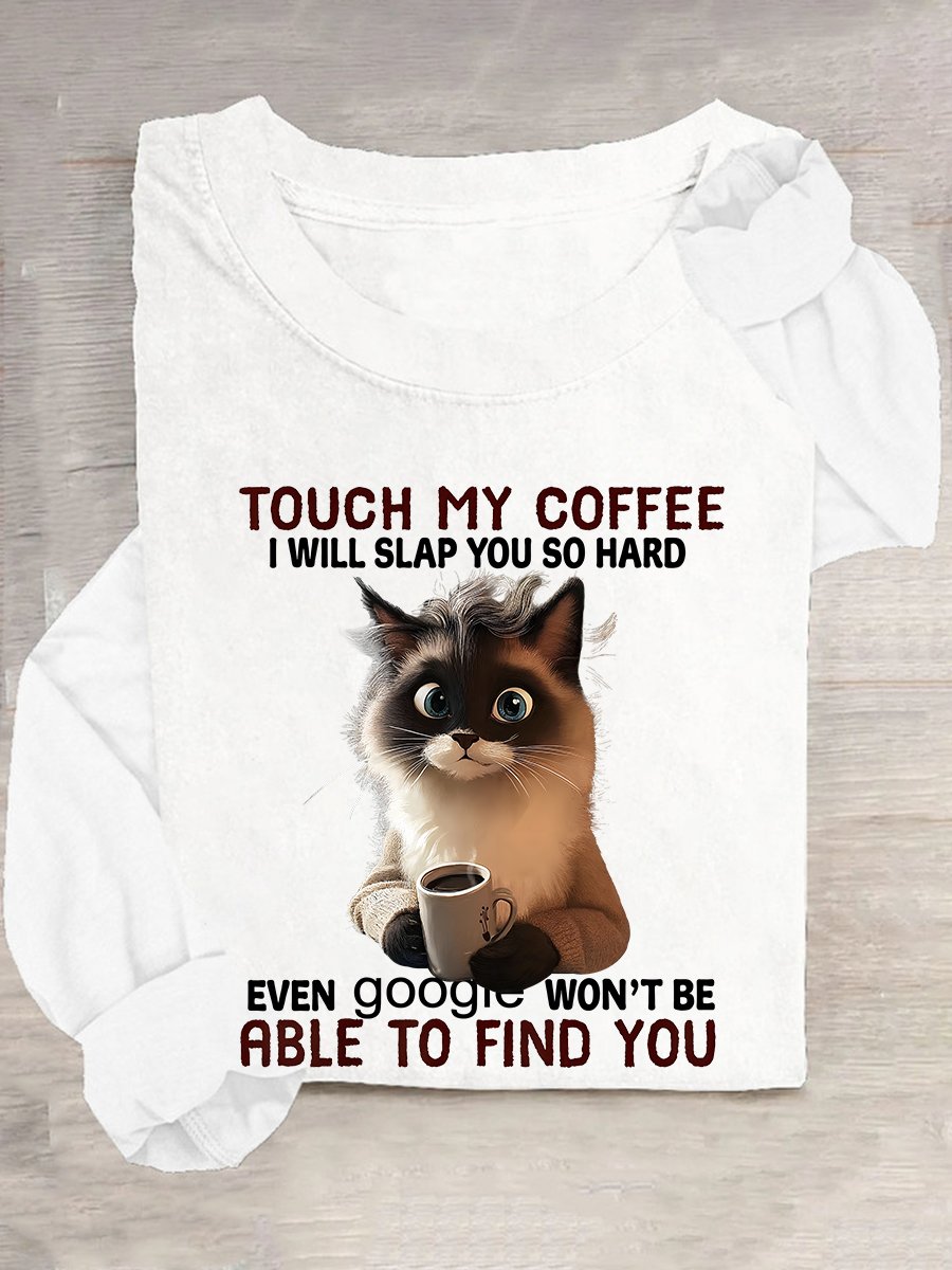Funny Nope Cat Coffee Casual Long Sleeve Shirt