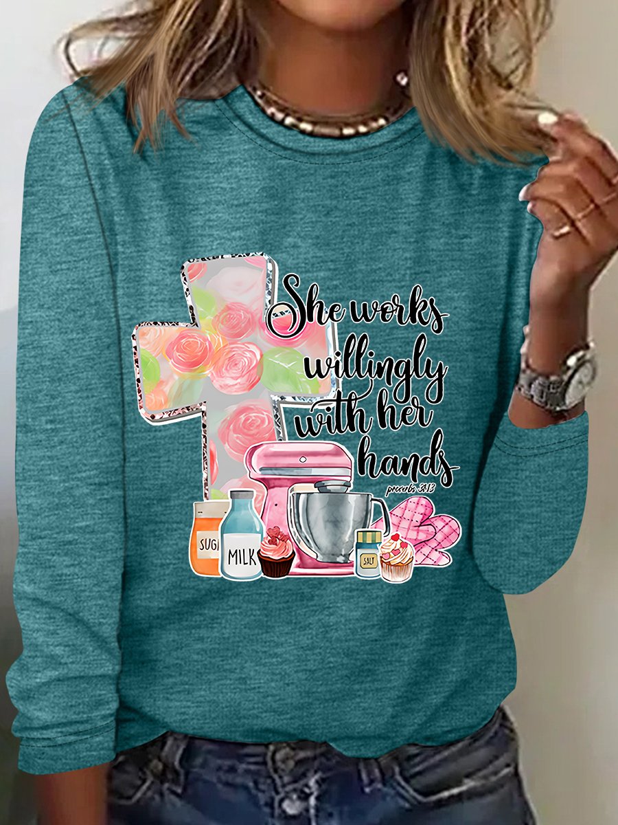 Alzheimer's Casual Crew Neck Floral Long Sleeve Shirt