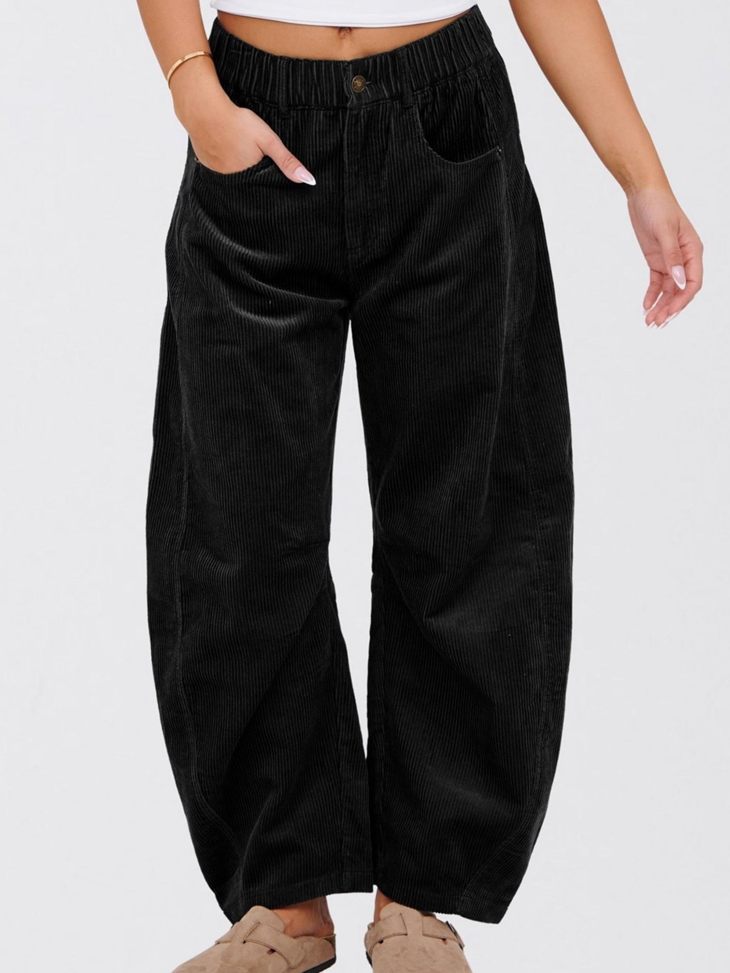 Women's Elastic Waist H-Line Corduroy Pants Daily Going Out Pants Beige Casual Split Joint Plain Spring/Fall Pants