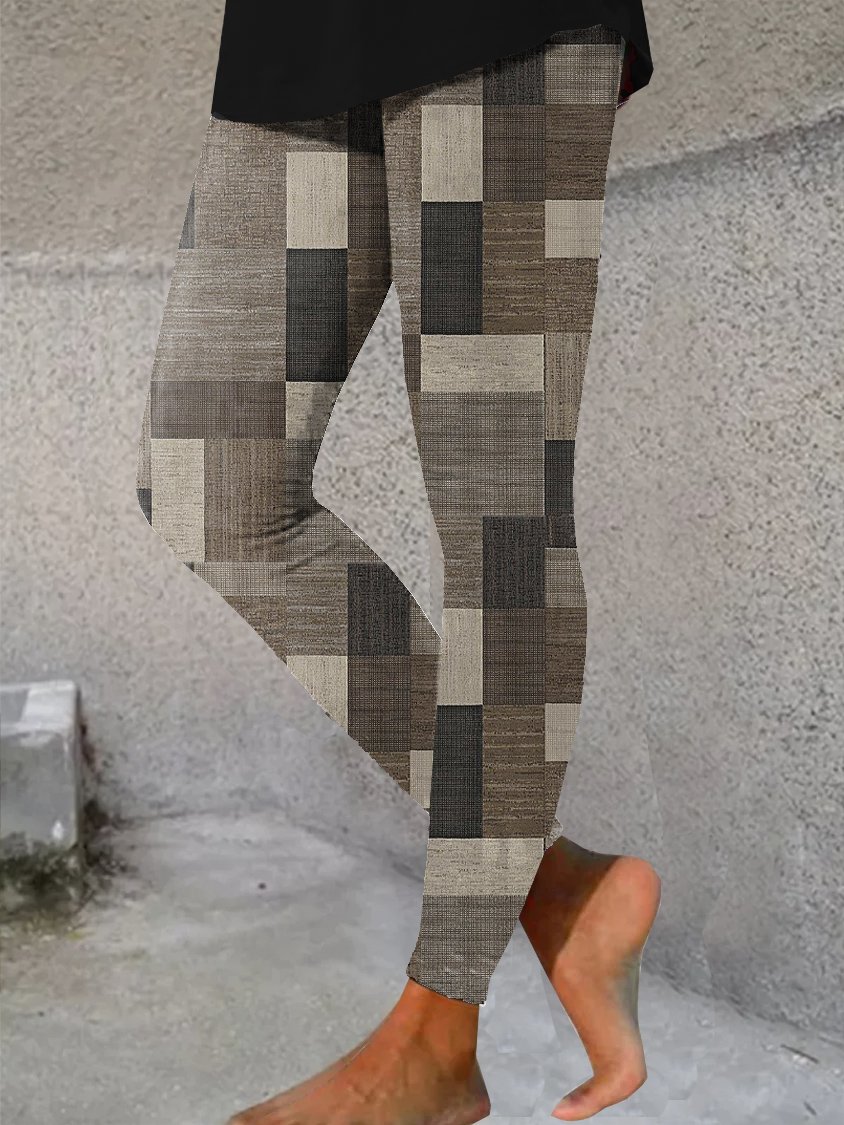 Fluff/Granular Fleece Fabric Striped Vintage Leggings