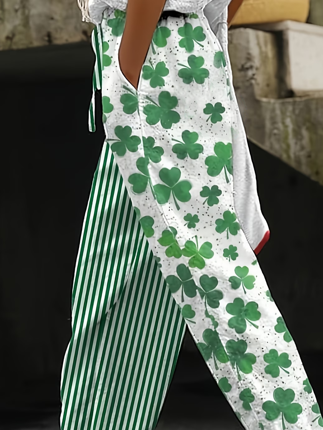 Women's Saint Patrick's Day H-Line Baggy Pants Daily Going Out Pants Green Casual Printing Shamrock Spring/Fall Pants