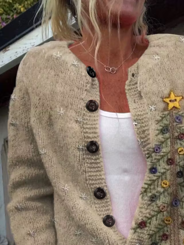 Women's Christmas Print Casual Button-Down Collar Cardigan